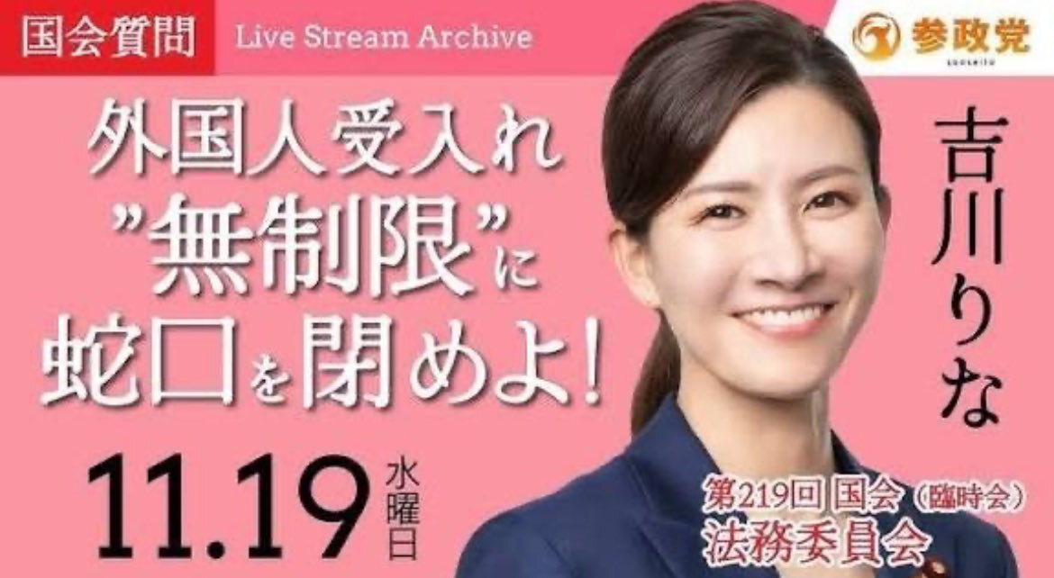 吉川りな議員国会質疑-11月19日-前編 おはようございます☀ 今日は11月19日に行われた吉川りな衆議院議員の国会質疑の内容をご紹介します。 <外国人受け入れに伴う国民の不安と実態把握について> ・吉川議員