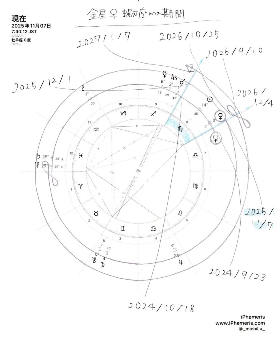 #金星移動 ♀♎︎→♏︎】 ■金星蠍座期間 前回:2024/09/23〜2024/10/18 今回:2025/11/07〜2025/12/01 次回:2026/09/10〜2026/10/26 次②:2026/12/04〜2027/01/07 この期間の浮気は絶対にNGです。必ずバレます。「バレてない」と思ってもバレています。弱みとして握られて後で出されますよー pic.x.com/7SdmUTATBf x.com/_michilu_/stat…