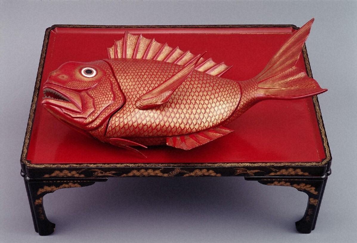 古くから親しまれている「おめでたい」縁起物。ご紹介するのは、懐石用漆器『沈金鯛形漆器及び膳(漆芸)』(#金沢市立安江金箔工芸館 @yasuekinpaku)。沈金は、金箔などを用いた装飾技法で、中国の「鎗金(そうきん)」が日本に伝わったものです。#ジャパンサーチ jpsearch.go.jp/item/kinpaku-1… pic.x.com/nxfvytimsV