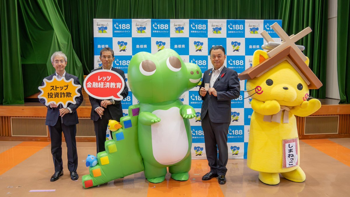 #ワニー参事官 が丸山島根県知事を表敬訪問しました🐊 10月16日(木)、ワニー参事官が高梨松江財務事務所長や日本銀行松江支店の大関支店長などとともに、丸山島根県知事を表敬訪問し、地域における #金融経済教育 のさらなる充実に向けた連携強化をお願いしました! pic.x.com/SZq9b94Ble