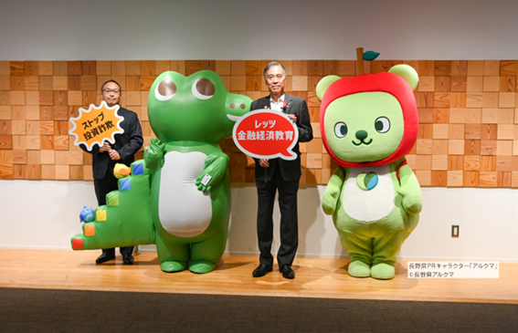 長野県の阿部知事と、アルクマにご挨拶してきたよ🍏🍎 旅好きなアルクマに、長野のおいしいものをたくさん教えてもらったよ! 長野県にもクマなく金融経済教育を広めていくために、一緒に頑張るよ🔥