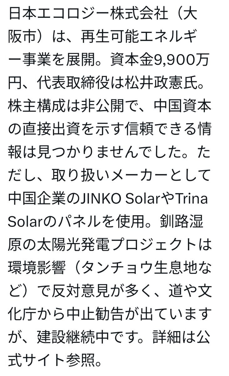 #日本エコロジー は既にシンガポール系企業へ土地を転売しちまってるから工事再開を強行しなきゃならんのだろうな 他の12ヶ所でも同じことやってるじゃない? 誰かが財務状況や土地名義とか調べてくれたその辺ハッキリするやろ #釧路湿原メガソーラー #釧路湿原 #太陽光発電 x.com/JmaxTopics/sta…