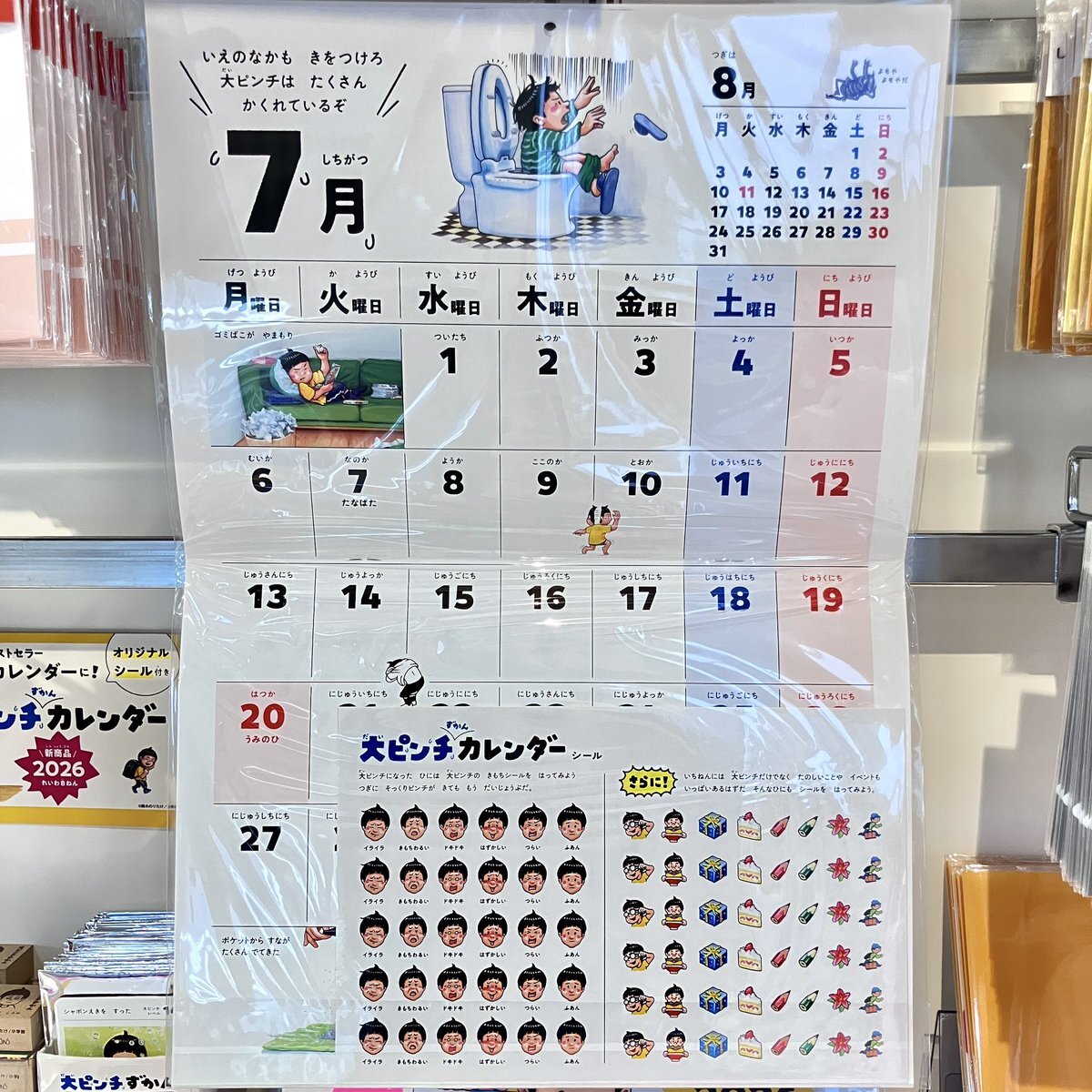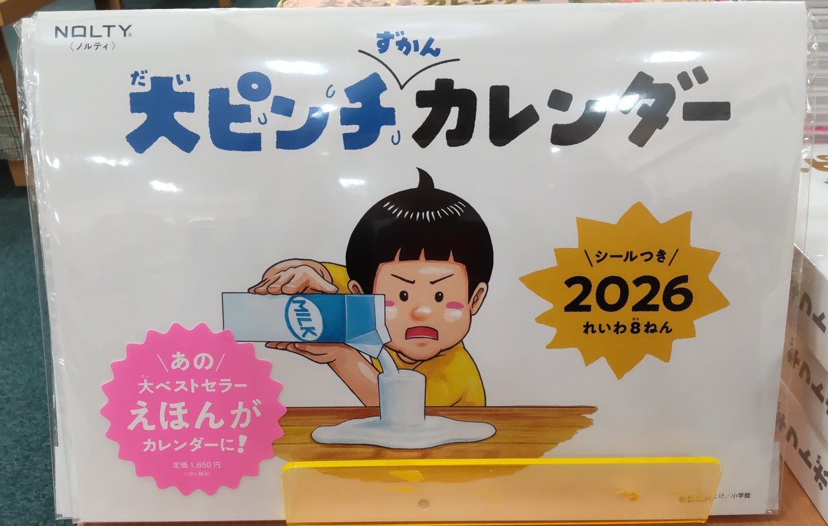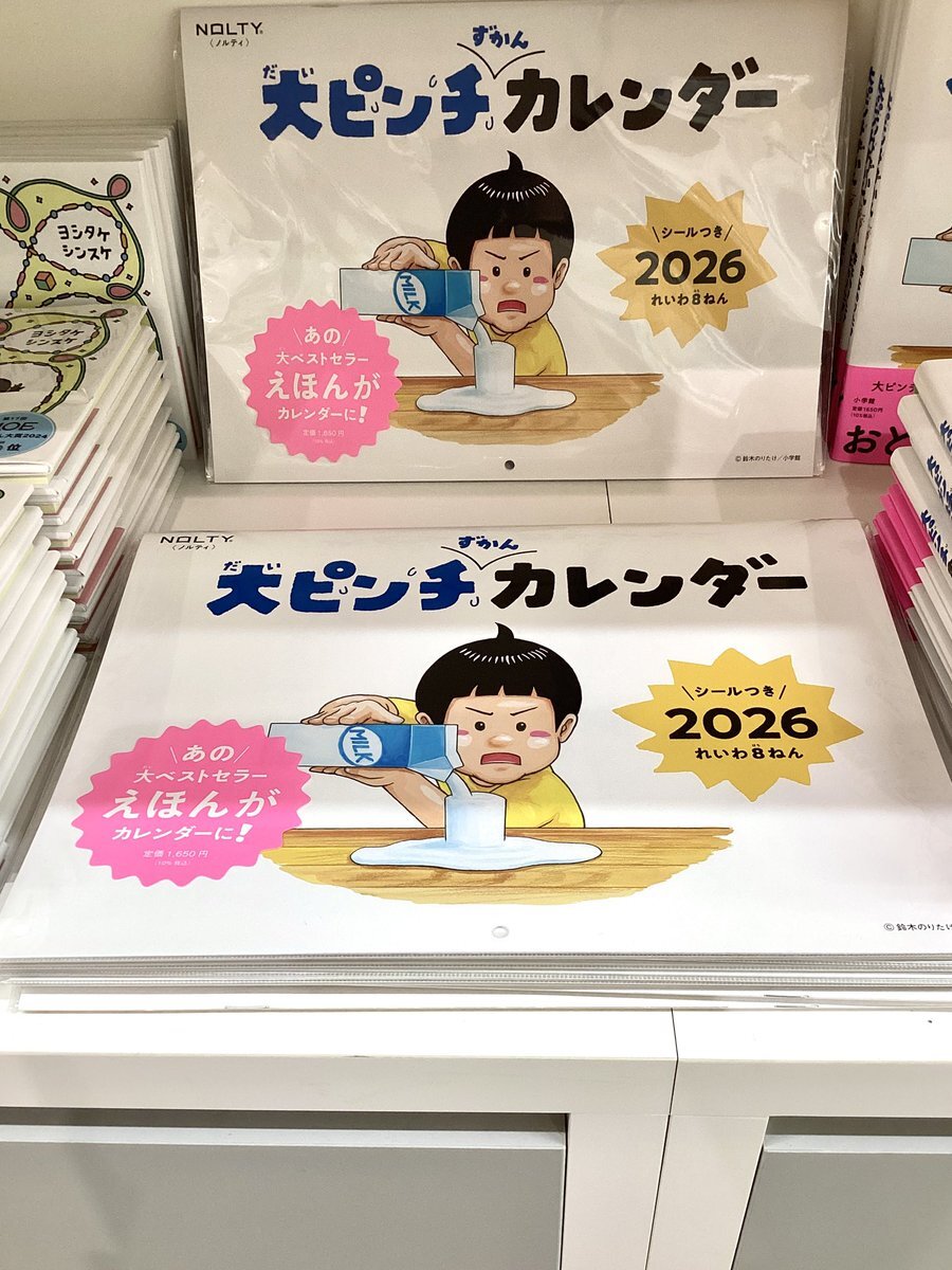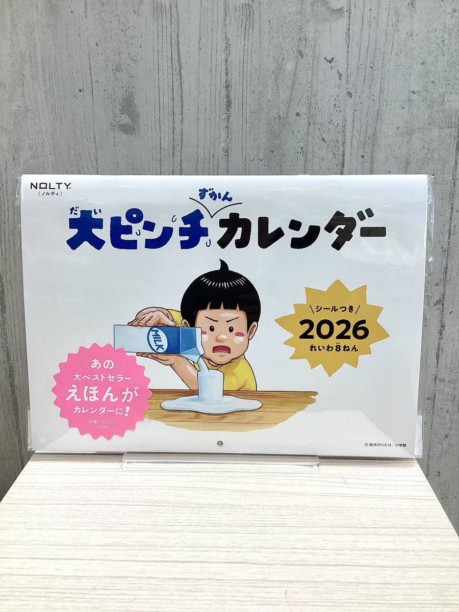 新入荷✨『#大ピンチずかん』カレンダー2026 見開きA3サイズの壁掛けタイプのカレンダー🗓️ 文字が大きく見やすいデザインで散りばめられたイラストも嬉しいポイント😆 可愛らしいシール付きで楽しく予定を立てられます👍 この機会にぜひご来店お待ちしております♪ #鈴木のりたけ #小学館 #ehons pic.x.com/dHPZ4oMGei