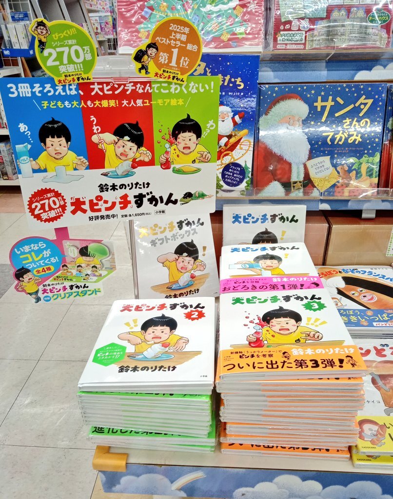 ⛄冬の児童図書まつり⛄ シリーズ累計270万部突破‼️ 2025年上半期ベストセラー総合第1位👑 #鈴木のりたけ 先生の大人気ユーモア絵本『#大ピンチずかん』シリーズをお買い上げの方に、特製クリアスタンドをプレゼント🎁✨ ※ランダム封入となります #小学館 pic.x.com/xYHuukcBJh
