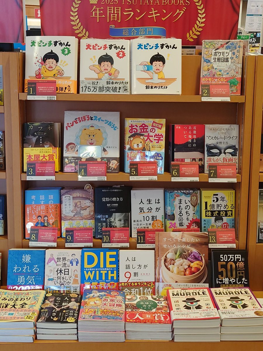 【BOOK情報】 2025 TSUTAYA BOOKS年間ランキング✨️ 『文庫部門』第1位は国宝 『総合部門』第1位は大ピンチずかんです👏✨️ 是非ご来店ください😊 #TSUTAYABOOKS #2025年間ランキング #国宝 #吉田修一 #朝日新聞出版 #大ピンチずかん #鈴木のりたけ #小学館 pic.x.com/tFK5R7JVV4