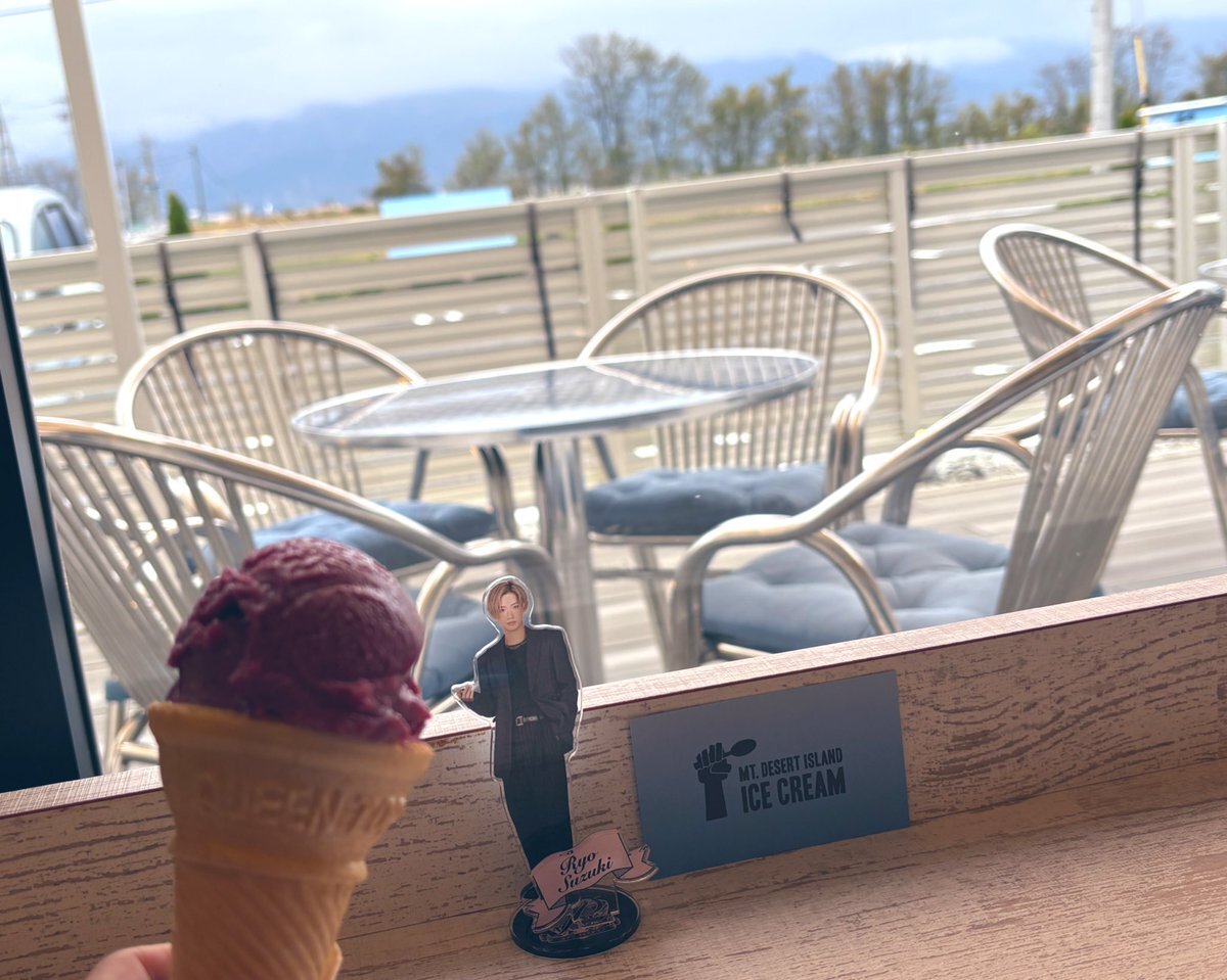 凌友さんにおすすめいただいたアイス屋さんへ🍨✨ 👻息子🚃は【ブルーベリーバジルソルベ🫐】私は【信州ナイアガラワインレーズン】を🫶 もったり?するアイスでなかなか食べたことない感じで美味しかった〜😋✨ #鈴木凌くんとおでかけ #マウントデザートアイランドアイスクリーム #長野旅行 pic.x.com/a1YpWnfqsM