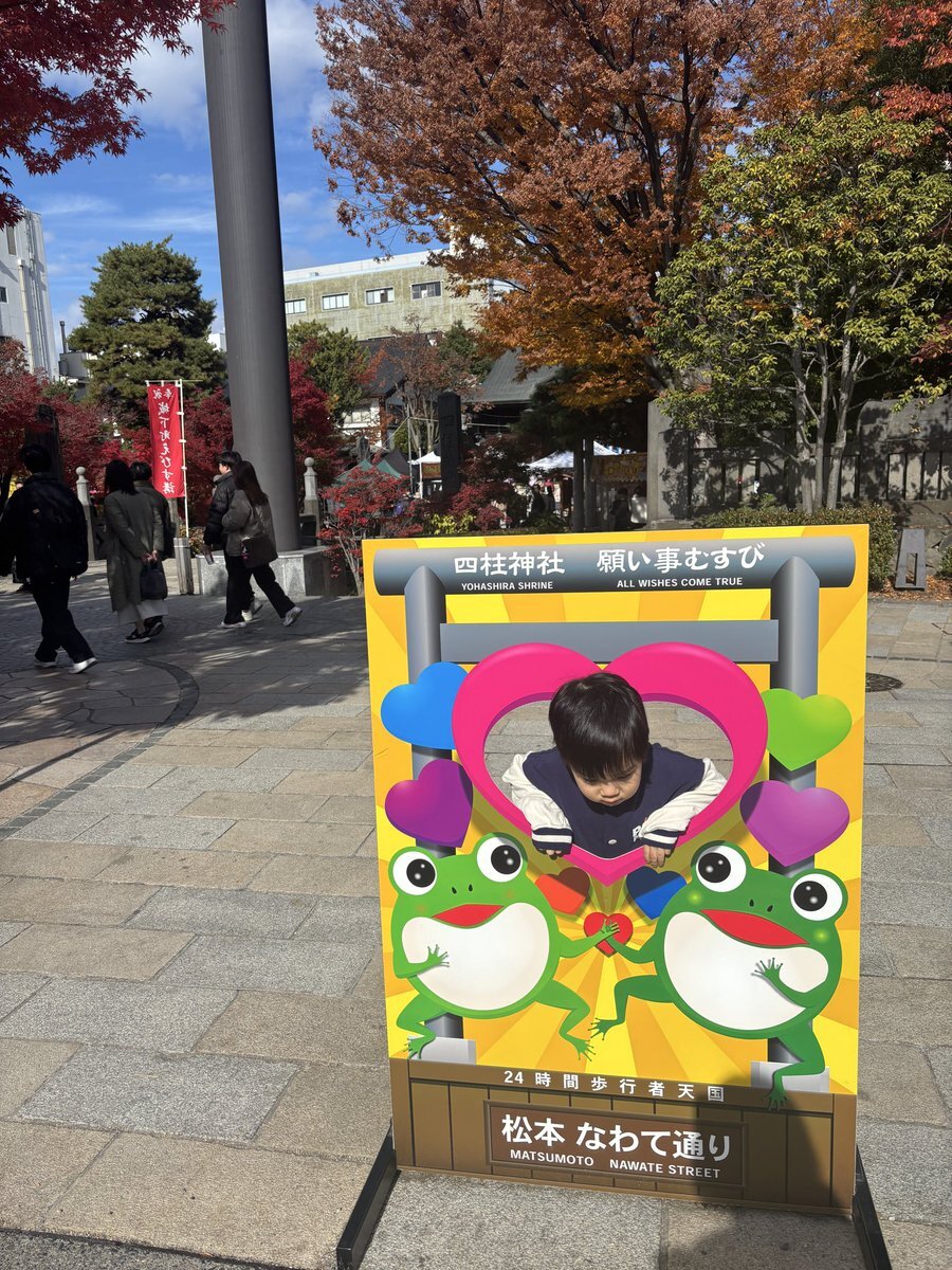 #長野旅 も終盤で凌くん撮影もこれが最後かなあ〜寂しい🥲 👻息子🚃もアクスタ凌くんと記念撮影📸 #鈴木凌くんとおでかけ #四柱神社 #小さな凌くんオタ pic.x.com/UqvFp86qdt