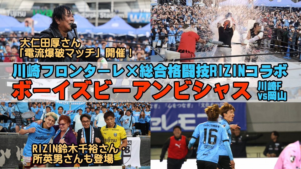【大仁田厚「電流爆破マッチ」で閃光走る!川崎フロンターレvs岡山戦でRIZINコラボ「ボーイズビーアンビシャス」&「消防フェア」】 #frontale #川崎フロンターレ #RIZIN #大仁田厚 #所英男 #鈴木千裕 #雷神矢口 #電流爆破マッチ 記事 musashikosugi.blog.shinobi.jp/Entry/7046/ 動画 youtu.be/h7Zu-lJB0mc?si… pic.x.com/k7iL4RGkfh