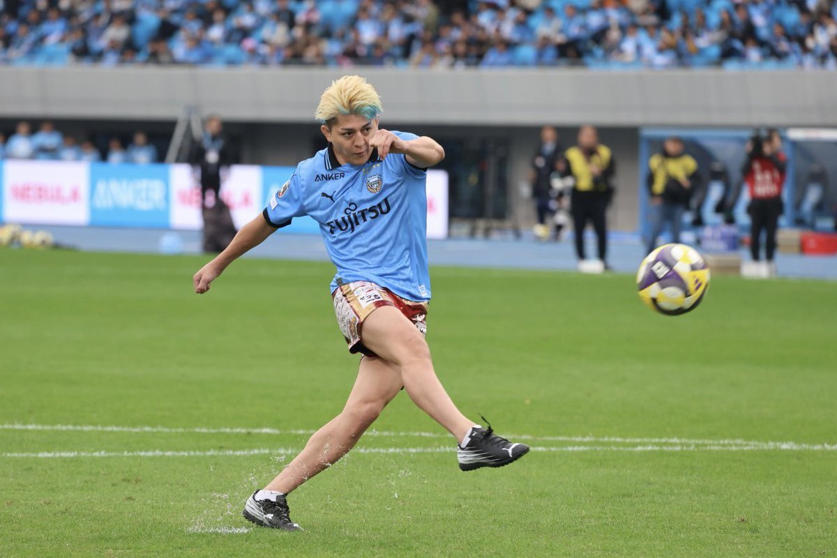 記事未公開写真より、RIZINファイターの鈴木千裕選手の始球式別カット。見事なキックでした。 #frontale #川崎フロンターレ #RIZIN #鈴木千裕 pic.x.com/U50G2jczun x.com/musashikosugi/…