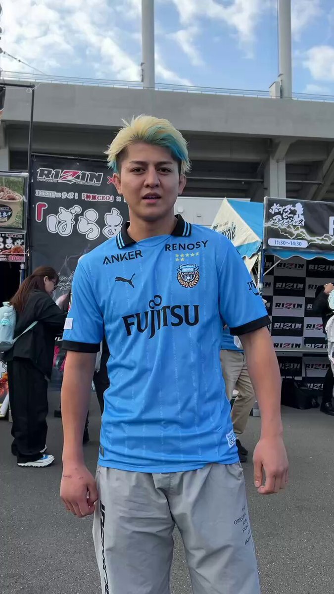鈴木千裕選手 ファンフロの対談見た時から良い人だなって印象で、ばらあげ買いに行った時近くにいて髪も水色入れてくれててかっこよかった! #frontale #RIZIN #鈴木千裕 pic.x.com/Dtj9v2zFFe