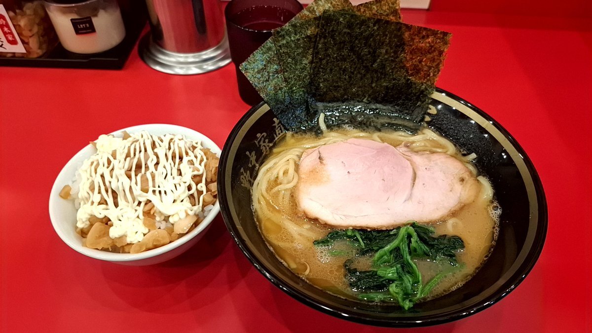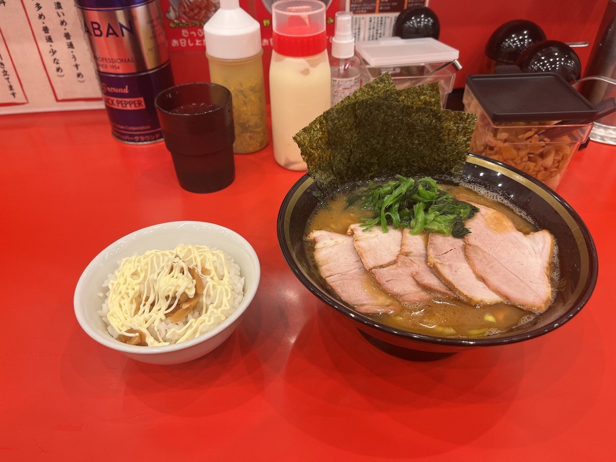 2025年 253杯目 野中家直系 鈴木家さん 本厚木駅から徒歩5分 ラーメン 850円 味玉 100円 ライス食べ放題 150円 ライスの上に極ニンニクとマヨネーズは最高。野中家特製麺、燻製チャーシュー、濃厚スープ全てが美味しかったです! また来ます! #野中家直系鈴木家 #鈴木家 pic.x.com/BKGWqMymgM