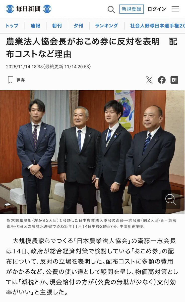 「おこめ券」は本当に物価高対策になるか 「JA」「鈴木農水相」が全面支援も…「5キロ5000円」時代には“焼け石に水”との声も dailyshincho.jp/article/2025/1… #デイリー新潮 #鈴木憲和 は、農水相じゃない。#農協相 だ。JAの広報。