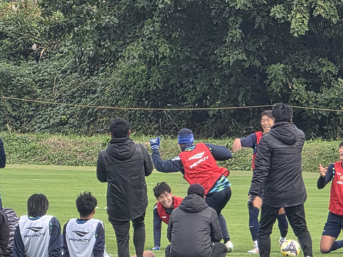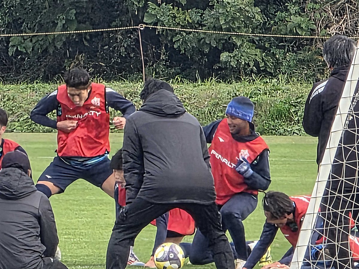 ちなみにゲーム形式の練習で罰ゲームに至ったのは、 #中野伸哉 選手、 #鈴木章斗 選手、#ゼヒカルド 選手、#太田修介 選手、#舘幸希 選手。先陣を切ってゴリラの物まねをしたヒカルド選手には爆笑が起きていました!実は太田選手もノリノリ? (エルゴラ湘南担当:河合萌花)#bellmare pic.x.com/R6PMPFiv7T