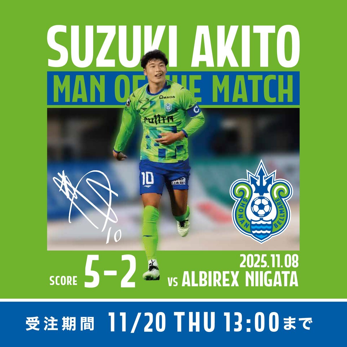 #鈴木章斗 選手 MOMグッズ受注販売開始🔥 \ 11月8日(土)新潟戦の「MAN OF THE MATCH」⚽✨ 鈴木章斗選手の記念グッズを受注販売💐 ⏰受注期間 11月20日(木)13:00まで ご購入はこちら🛒 bit.ly/4qWuZgZ #bellmare pic.x.com/akZplIMeOT
