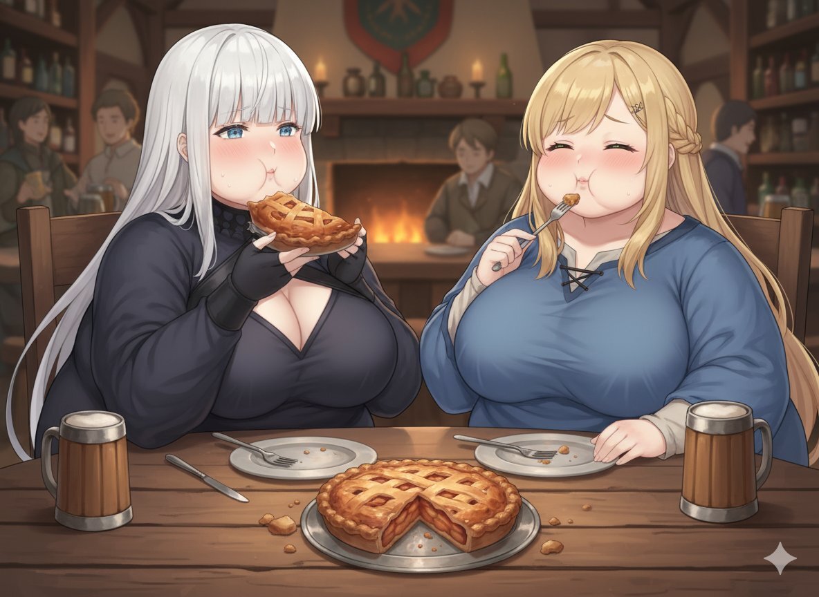 グロリア「それで~キャメロットは🥕でしょ、リゴは🍎でしょ、イナンナは🌾でしょ」 ニーティア「じゃあこれはリゴパイか」 #非公式 #鈴蘭の剣ファンアート #AIart pic.x.com/gbDrz3w3Su