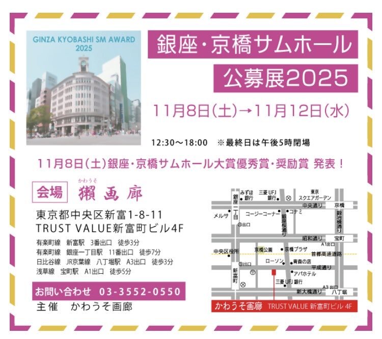 #銀座・京橋サムホール公募展2025 本日、最終日です🖼️ ご来場の際、最終日は17時までですのでご注意ください。 最後までどうぞ宜しくお願いいたします🙇♀️ 📍WEB kawausogarou.com/sm2025/ pic.x.com/a8qeHvOwzq x.com/naka187/status…
