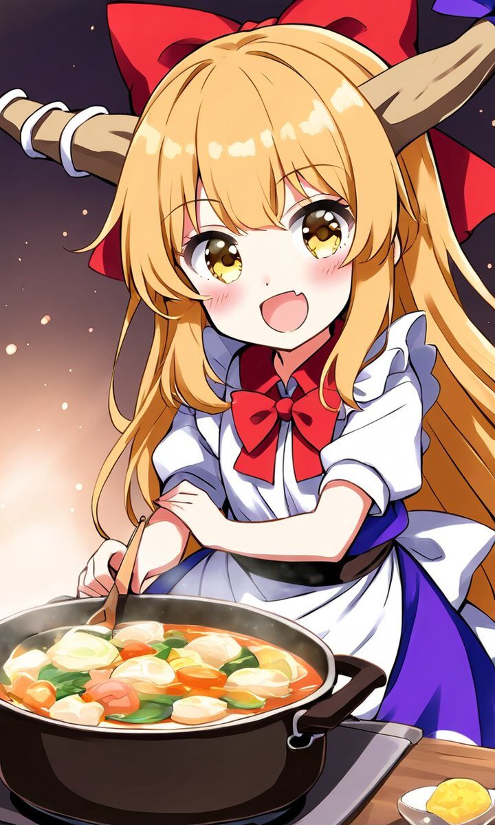 11月7日(金) 今日は何の日( 'ω')? #鍋の日 #もつ鍋の日 #鍋と燗の日 寒い日は鍋が一番だなっ! もつ鍋?人間の里の料理はよく知らんが… とにかく鍋と酒だぁーーー!!! \(ˊᗜˋ*)🍶 #東方Project #伊吹萃香 #AIart #AIイラスト pic.x.com/sVa2TtN3p8