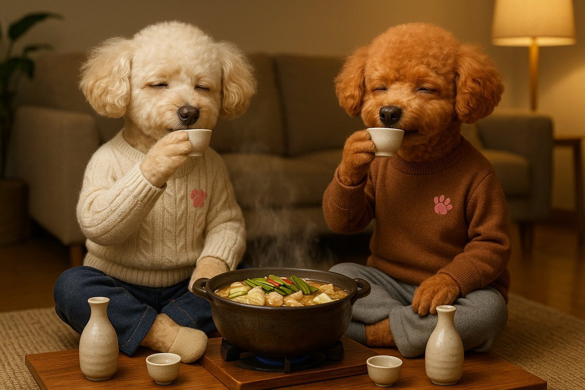 本日のワンショット🐶 🐾実写風シリーズ🐾 「ふぅ〜沁みるねぇ🍲」 「うん、これは大人の味だね🍶」 もつ鍋兄弟、今夜も満足🐾💛 でちゅ~~~🐶💕💕💕 #トイプー #犬好きさんと繋がりたい #AIイラスト #鍋の日 #もつ鍋の日 #鍋と燗の日 pic.x.com/8tNwgdXnSK