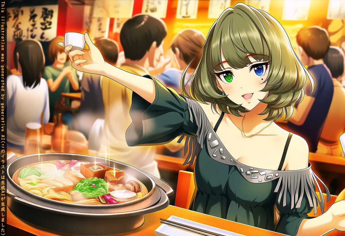 今日は鍋と燗の日です 高垣楓と鍋物を食べながら熱燗を飲むPさん 生成AIでは鍋物は難しいですね(;^_^A アセアセ・・・・ #鍋と燗の日 #高垣楓 #AIart pic.x.com/PesnVbzFRY