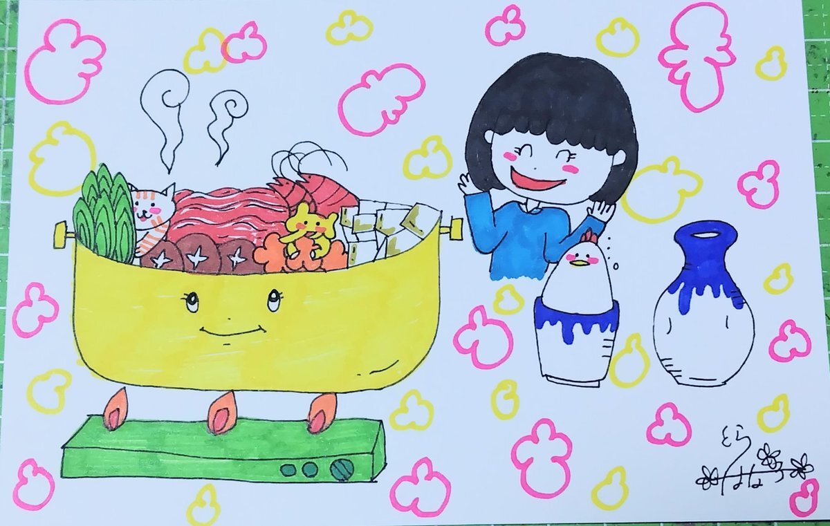 今日は「鍋と燗の日」「鍋の日」でもあるそうです また過去絵ですが🙇‍♀️ 鍋とニャン🍲🍶🐱 # #イラスト #鍋と燗の日 #鍋の日 pic.x.com/gBxkH69i1C