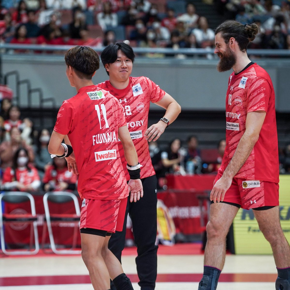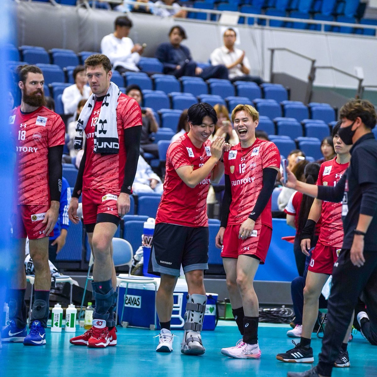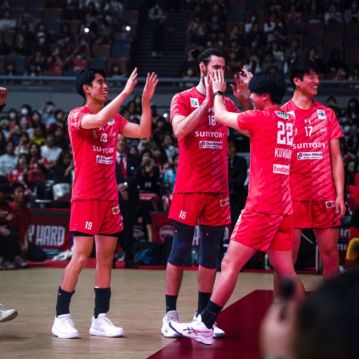 みなさんニコニコなハイタッチ🙌🏻 2025.11.02 Asueアリーナ大阪 #鍬田憲伸 選手 #サントリーサンバーズ大阪 pic.x.com/5cTlsVI6y7
