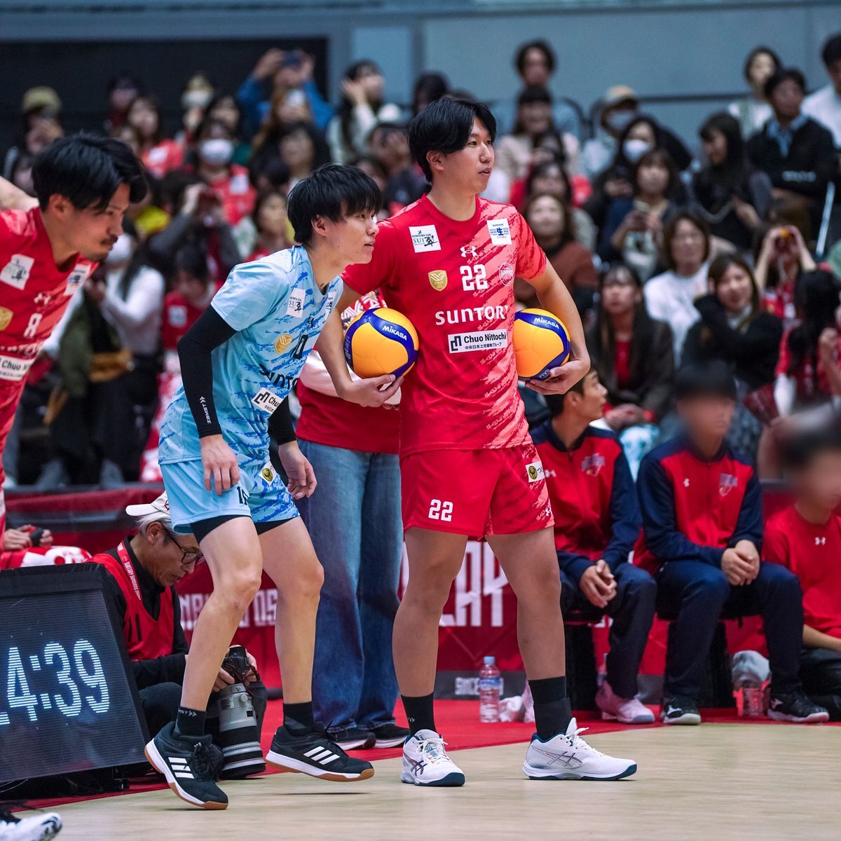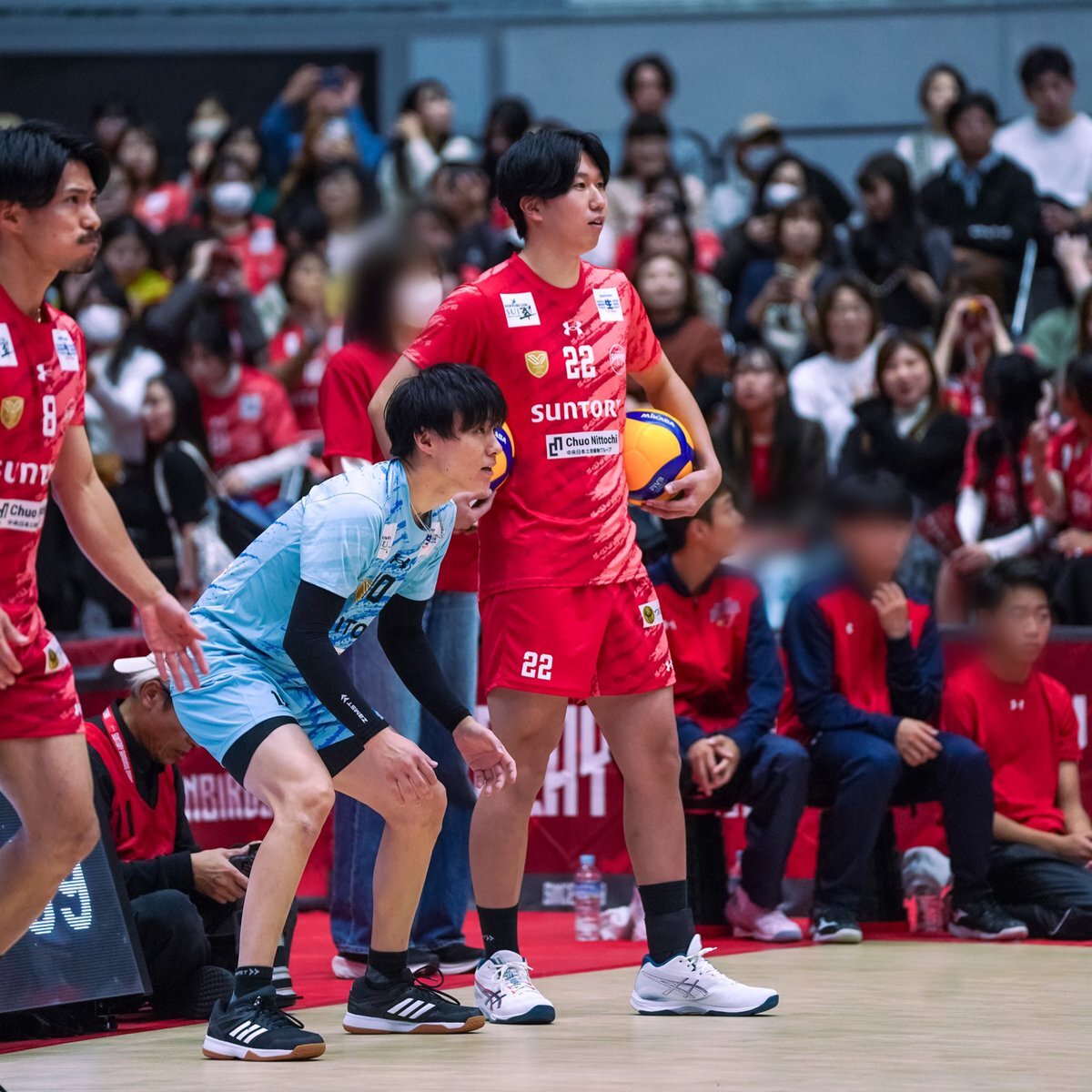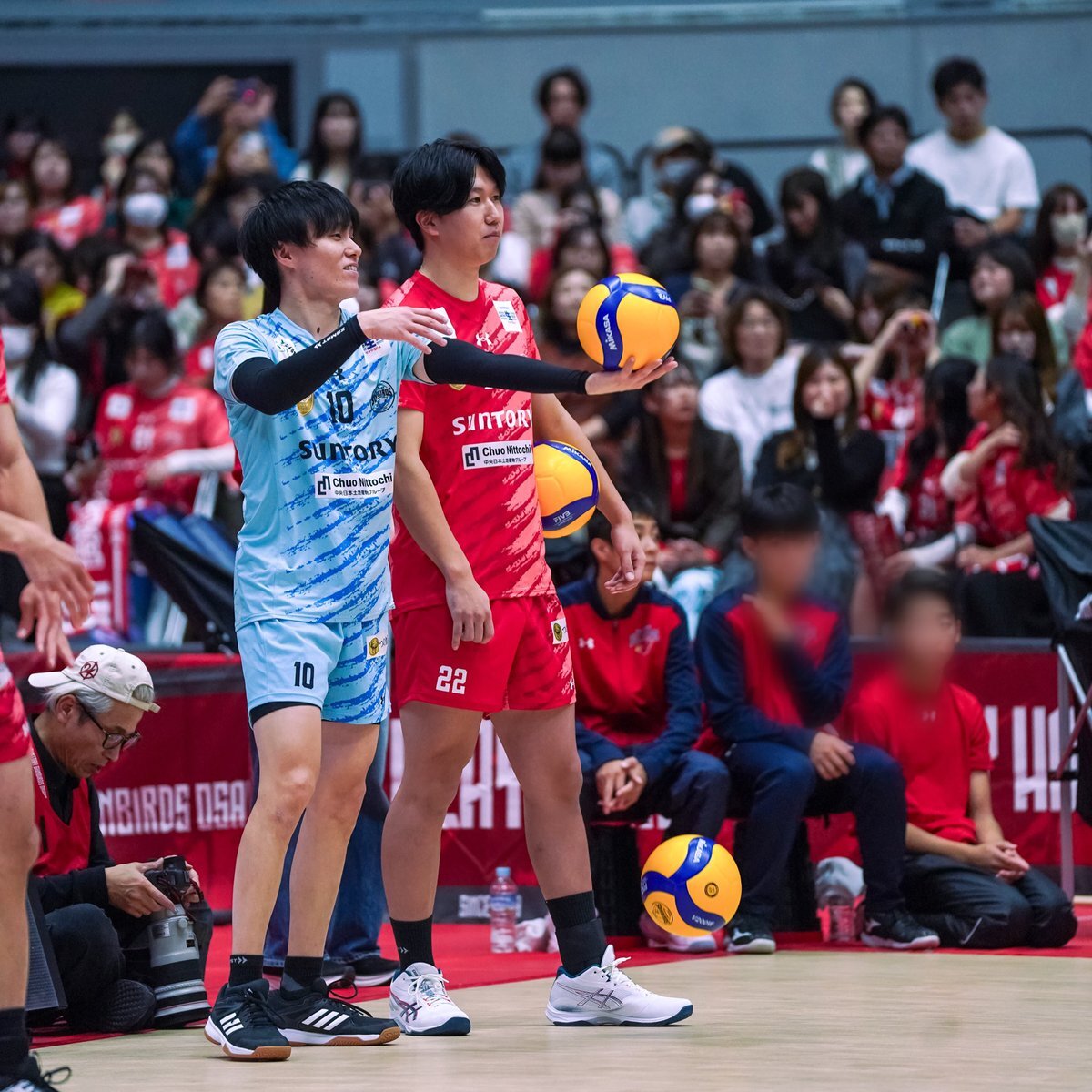2025.11.2 vsグレベア おがぴが弾いたボールが 私の後方の席の人の 頭?顔?にあたってしまい スイマセン...な顔のおがぴ (ファンイベントで話してたこと思い出しちゃったよ) 大丈夫ですか?と言ってるのは鍬田選手 #小川智大 #鍬田憲伸 #サントリーサンバーズ大阪 #SVリーグ pic.x.com/BI3v4Z6m1J