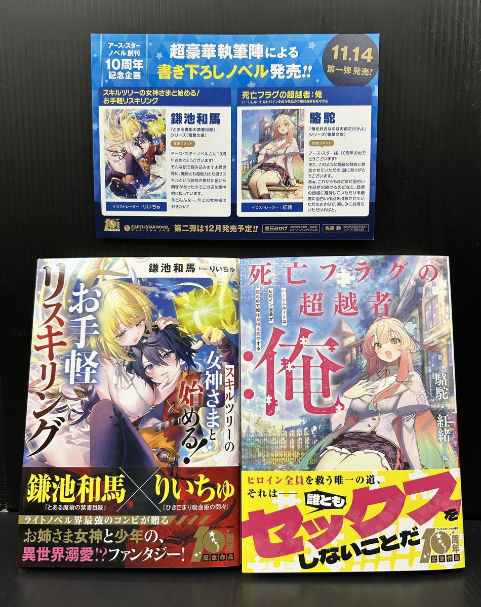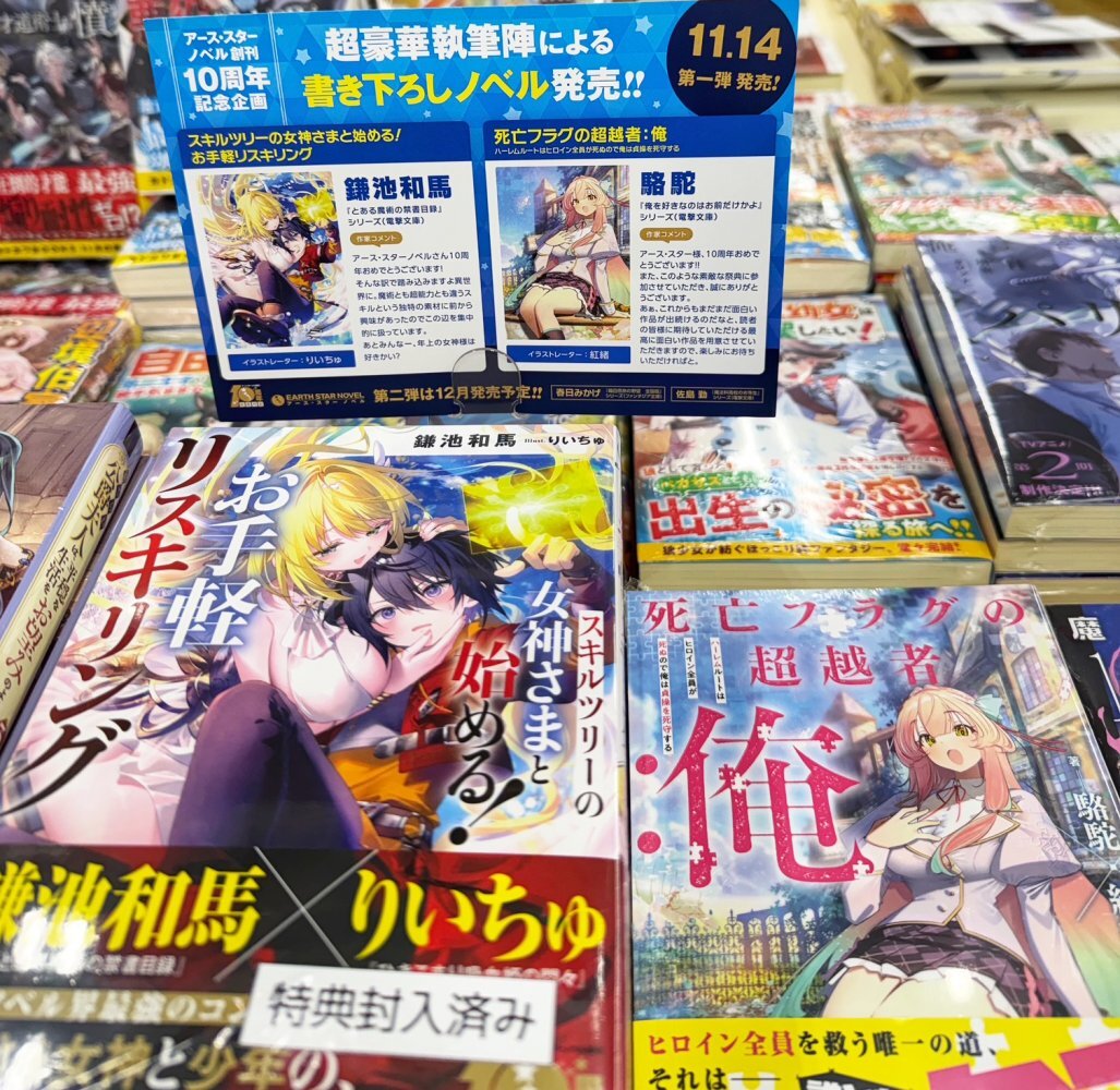 【ライトノベル】 『スキルツリーの女神さまと始める! お手軽リスキリング』 『死亡フラグの超越者:俺』 2点入荷しております! アーススターノベル10周年記念の書き下ろし企画です! #駱駝 #鎌池和馬 pic.x.com/PS5l2Ziug3