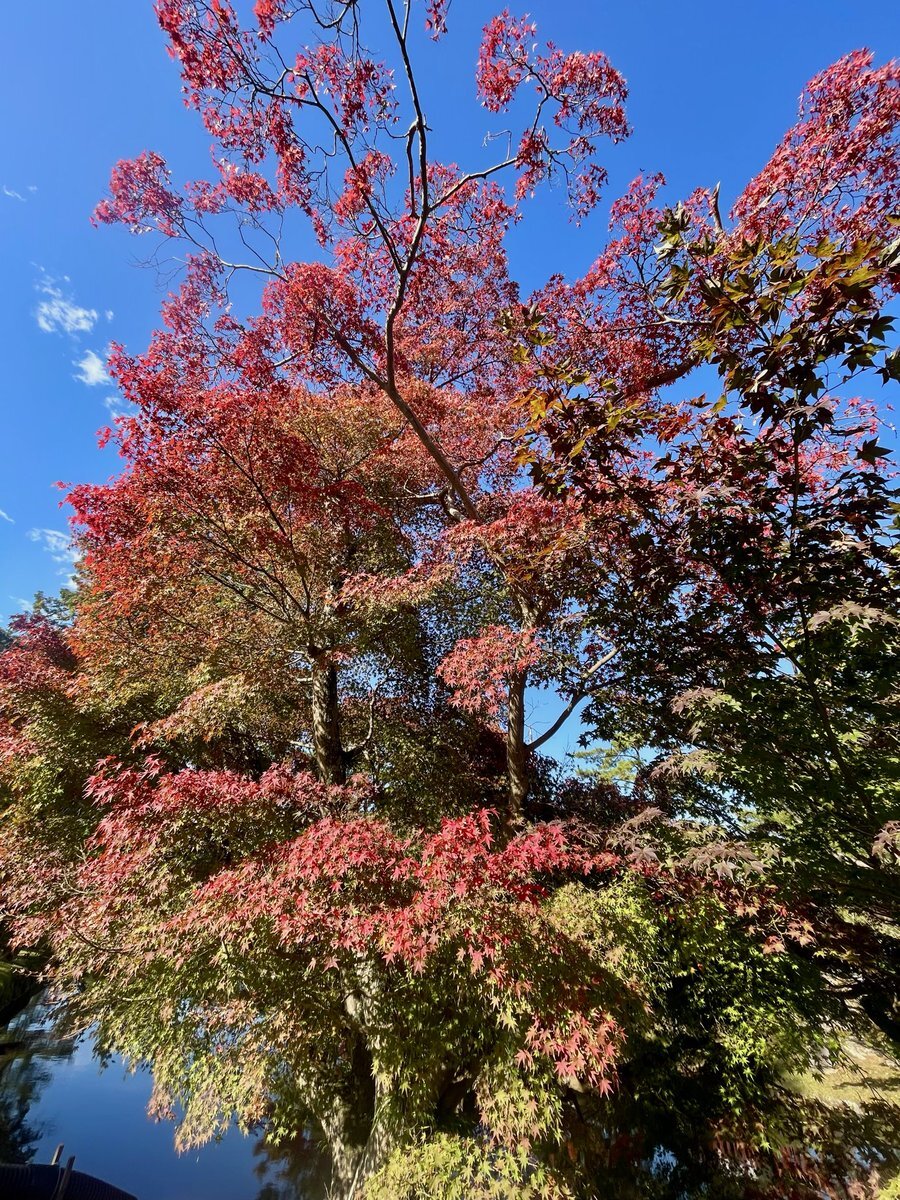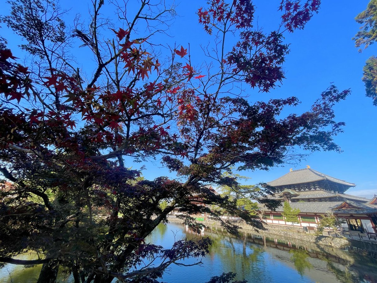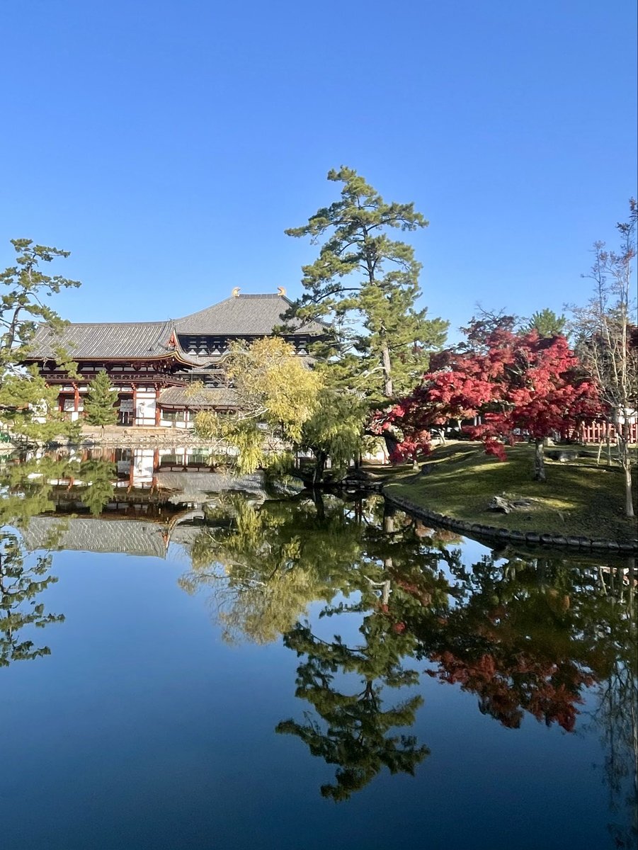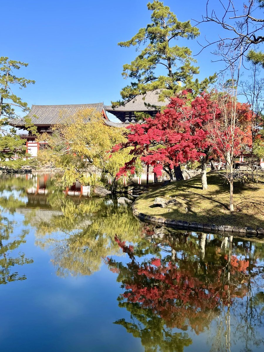 11/8(土)今朝は秋晴れの青空が広がり空気が澄んでとても気持ちがよいです。 鏡池の厳島神社のもみじが🍁赤くなりました。境内の他の紅葉はまだです。 大仏池のほとりにある大イチョウの紅葉もまだ黄色になっていません。 #奈良 #東大寺 #鏡池 #紅葉 #nara #todaiji #kagamiike pic.x.com/9ma74xqk0D