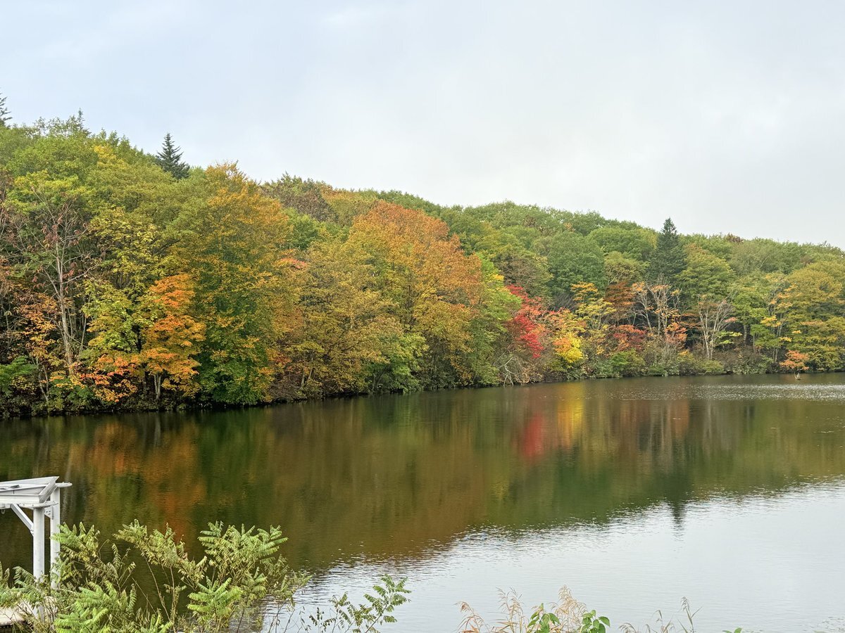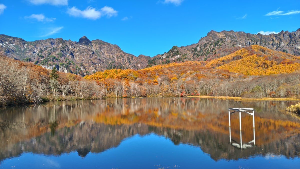 総務の田中です🍁 総務の窓から見える景色でも、紅葉がきれいになってきました。 先日、行ってきた戸隠では、赤ではなく黄色の葉っぱが多くて、とてもきれいでした✨ #紅葉 #鏡池 pic.x.com/36XhhHYIIY