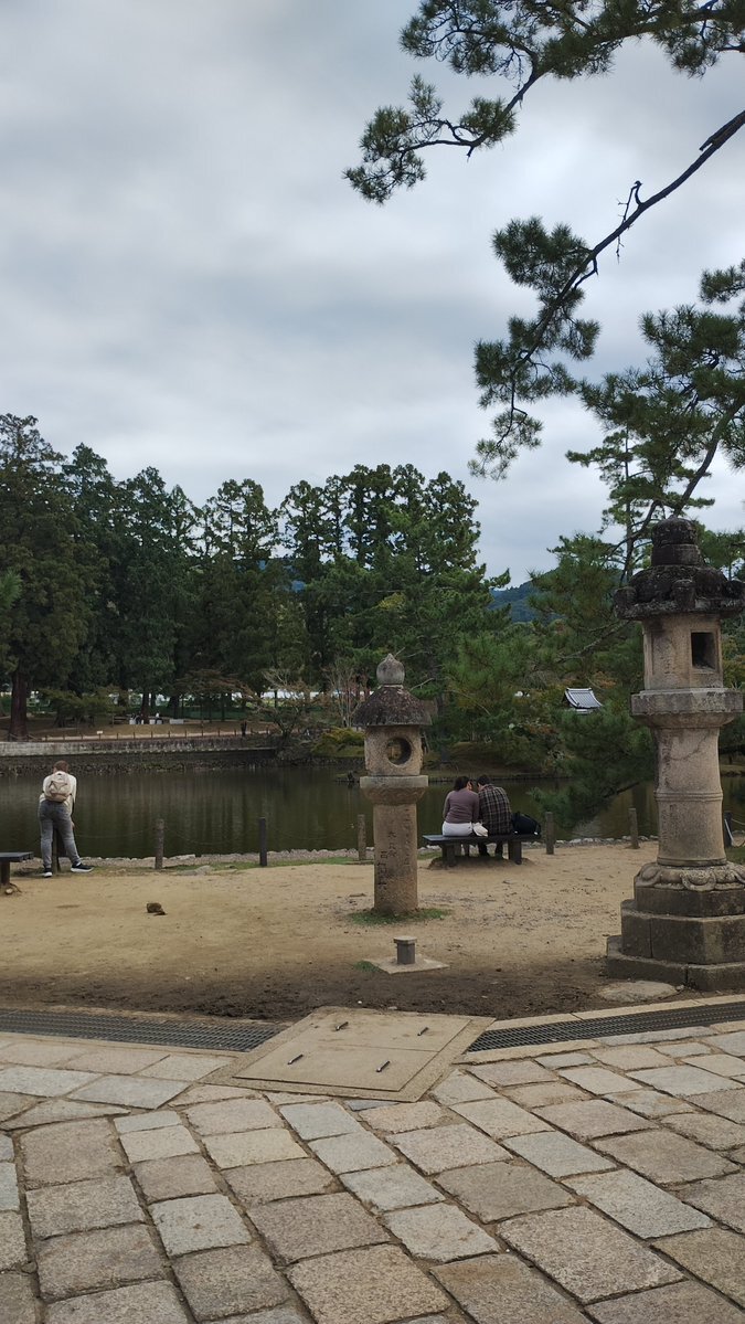 鏡池の厳島神社前、東側参道沿いのモミジが赤くなり始めています。 境内の他の場所の紅葉はまだ早いようです。 大仏池の大イチョウも2割ほど黄色になってきています。 Autumn color around Kagami-ike pond. #奈良 #東大寺 #鏡池 #紅葉 #モミジ #nara #todaiji #kagamiike pic.x.com/JwfTm8HI9G