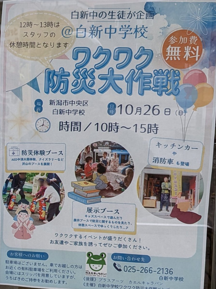 教本じゃ 載ってはいない 事ばかり 《本日白新中学校ワクワク防災フェスティバル予行練習の為、午後五時開店となります》  【男はつらいよ】 youtu.be/qjd-4rrX1K8?si… #鏡淵分団 #中央方面隊 #消防団 #新潟市 #白新中学校 #ワクワク防災フェスティバル pic.x.com/jUlm0YQld4