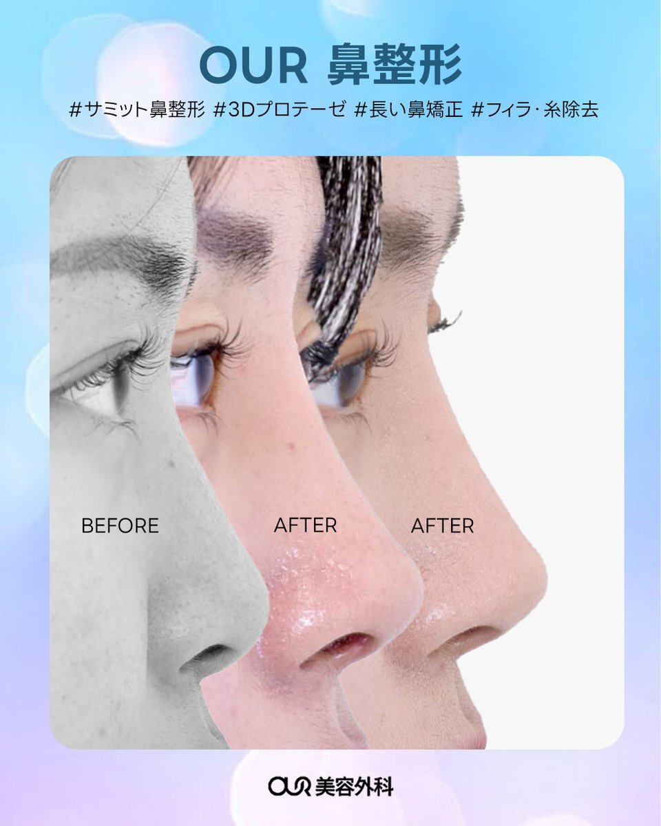 自然で上品な美ラインへ👃✨ 3Dプロテーゼを使用した“サミット鼻整形”で 立体感のある理想の横顔に💫 フィラーや糸除去後でも、 バランスよく仕上がる自然なデザイン🌸 line.me/ti/p/LQW4QpJfCh #アウア美容外科 #サミット鼻整形 #3Dプロテーゼ #長い鼻矯正 #フィラー除去 #糸除去 #鼻整形 pic.x.com/Sq85Ibuobw