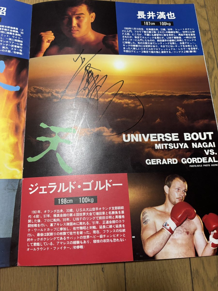 初めて行ったリングスのパンフレットに、また一つサインが増えました‼️ 長井選手、気さくに対応していただき、嬉しかった^_^ 来月の息子さんデビュー戦、応援に行かなきゃ📣 #長井満也 #ドラディション pic.x.com/IsDBhl4GNo