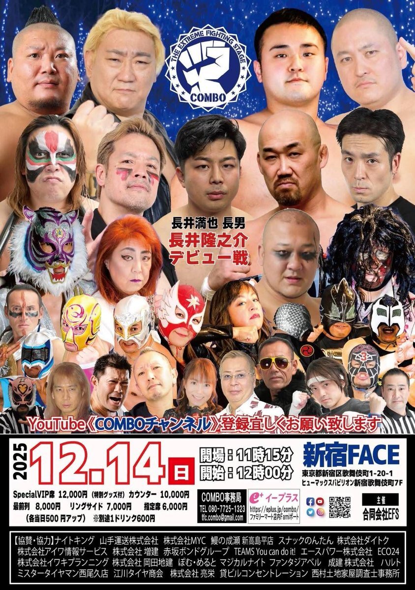 【重大発表】 長井満也の長男 長井隆之介12・14 COMBO新宿FACE大会でデビュー戦決定! combo.efs-info.com/?p=2677 #COMBO #プロレス #長井満也 #長井隆之介 #潮崎豪 #デビュー pic.x.com/EuTvnfa1xu