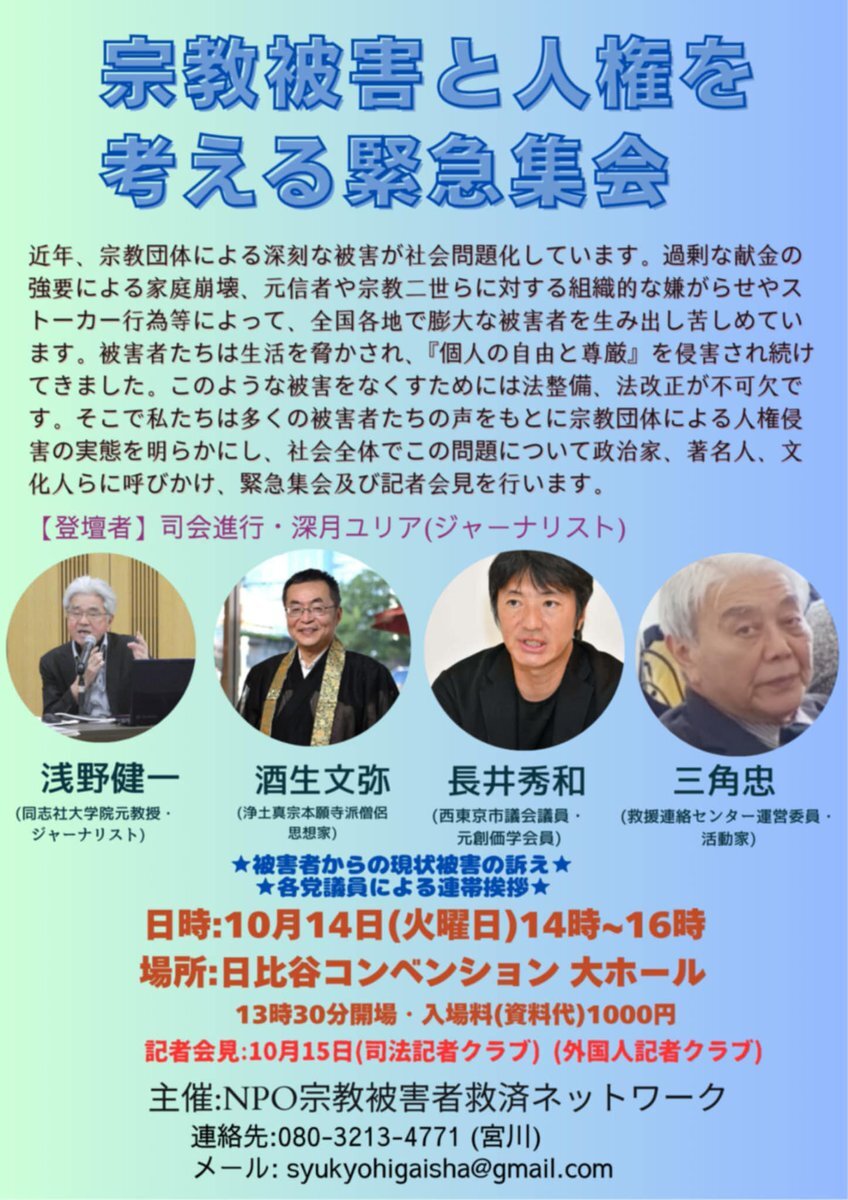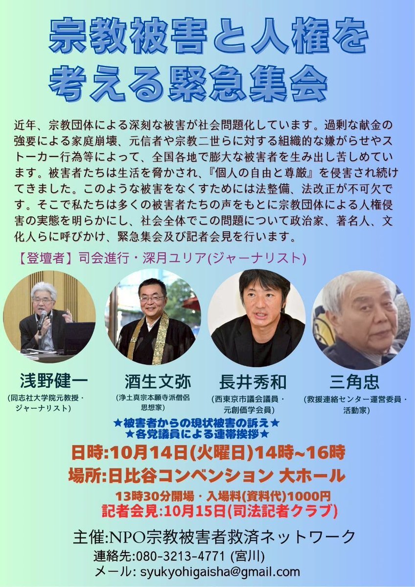 宗教被害と人権を考える緊急集会  LIVE配信  #長井秀和 #創価学会 #カルト#宗教2世問題 #宗教ネグレクト #高額献金 #組織的plaza.rakuten.co.jp/nishiageocondo… #r_blog