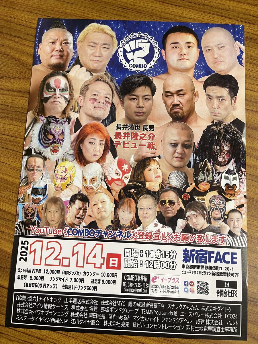 【重大発表】 長井満也の長男 長井隆之介12・14 COMBO新宿FACE大会でデビュー戦決定! combo.efs-info.com/?p=2677 #COMBO #プロレス #長井満也 #長井隆之介 #潮崎豪 #デビュー pic.x.com/EuTvnfa1xu