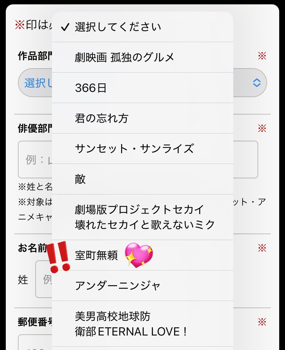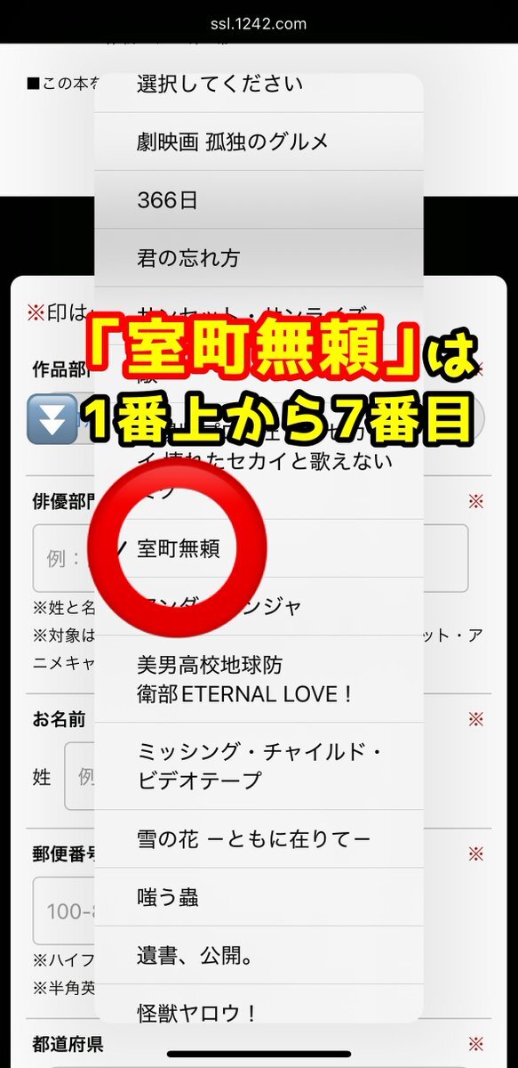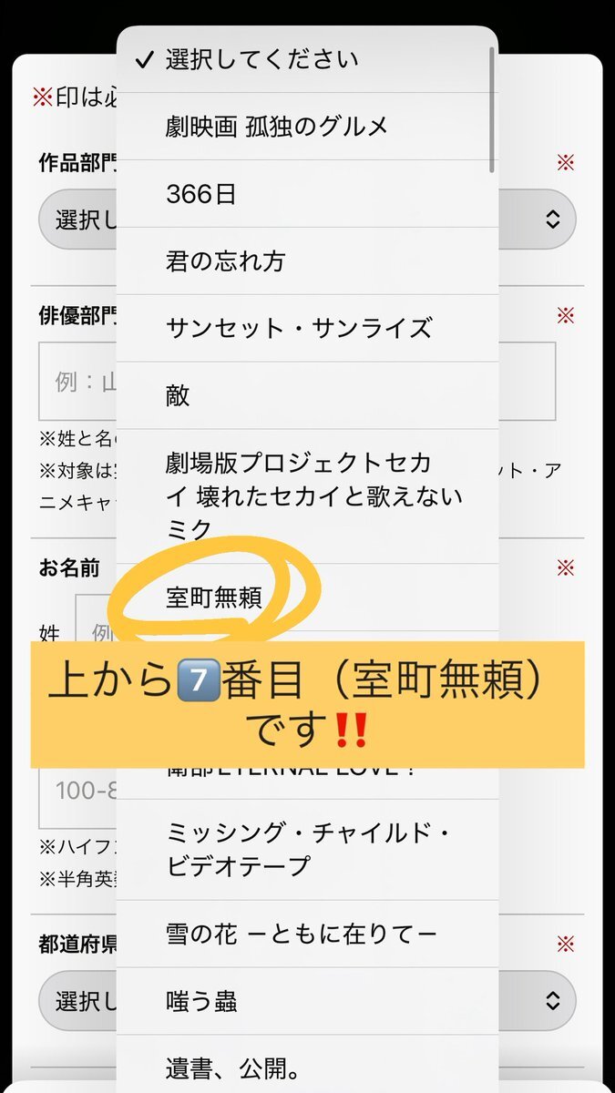 #️⃣日本アカデミー賞話題賞🏆 作品部門はプルダウン上から7番目 室町無頼 俳優部門は 長尾謙杜 です こちらのページ下部から投票できます🗳️ 🔗ssl.1242.com/aplform/form/a… 1/31までです! あなたの大切な一票をぜひ、"長尾謙杜"くんにお願いします🙇🏻♀️‼️ #長尾謙杜 #室町無頼 #長尾謙杜_映画賞投票 pic.x.com/1fOqI9xqEI x.com/ngkn_15ok/stat…