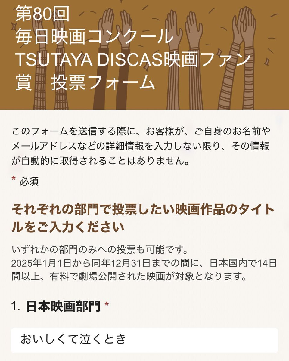 ⚔️📣✨拡散希望📣✨⚔️ 【 #日本アカデミー賞話題賞 】 の投票のご協力お願いいたします‼️‼️‼️ ⚠️〜投票期間〜⚠️ 2025/11/28〜2026/1/31🗓️ 投票リンク 🔗 ssl.1242.com/aplform/form/a… ご協力よろしくお願いします🙇🏻♀️💛‼️ #長尾謙杜_映画賞投票 #長尾謙杜 pic.x.com/eOQYUYBJ7o x.com/kiramekismile/…