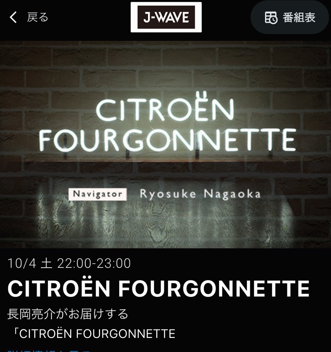 長岡亮介ひとりの回。 前回のフルゴネットは👇から radiko.jp/share/?sid=FMJ… 「秋パピエ」の当選もあります🌇 #長岡亮介 #シトロエン #FOURGONNETTE #jwave #radiko pic.x.com/WwFIsuZhQP