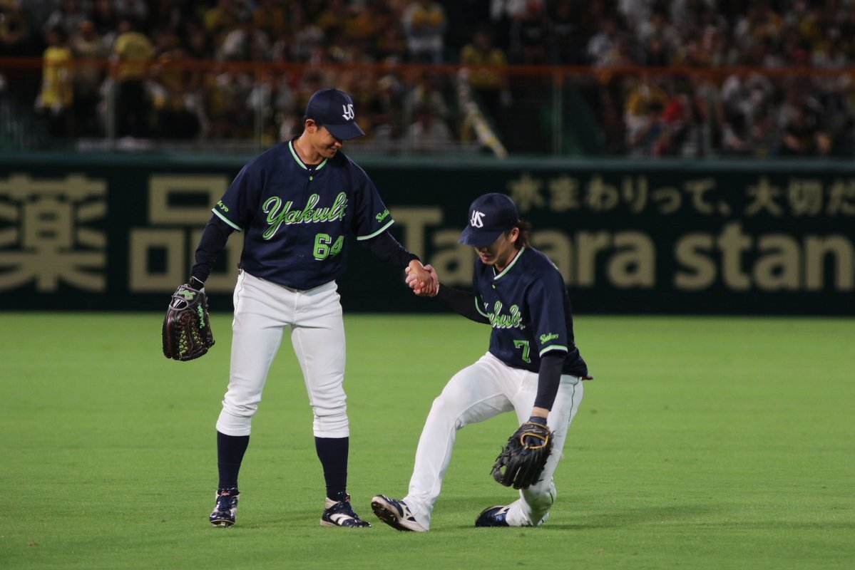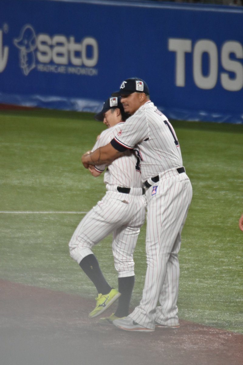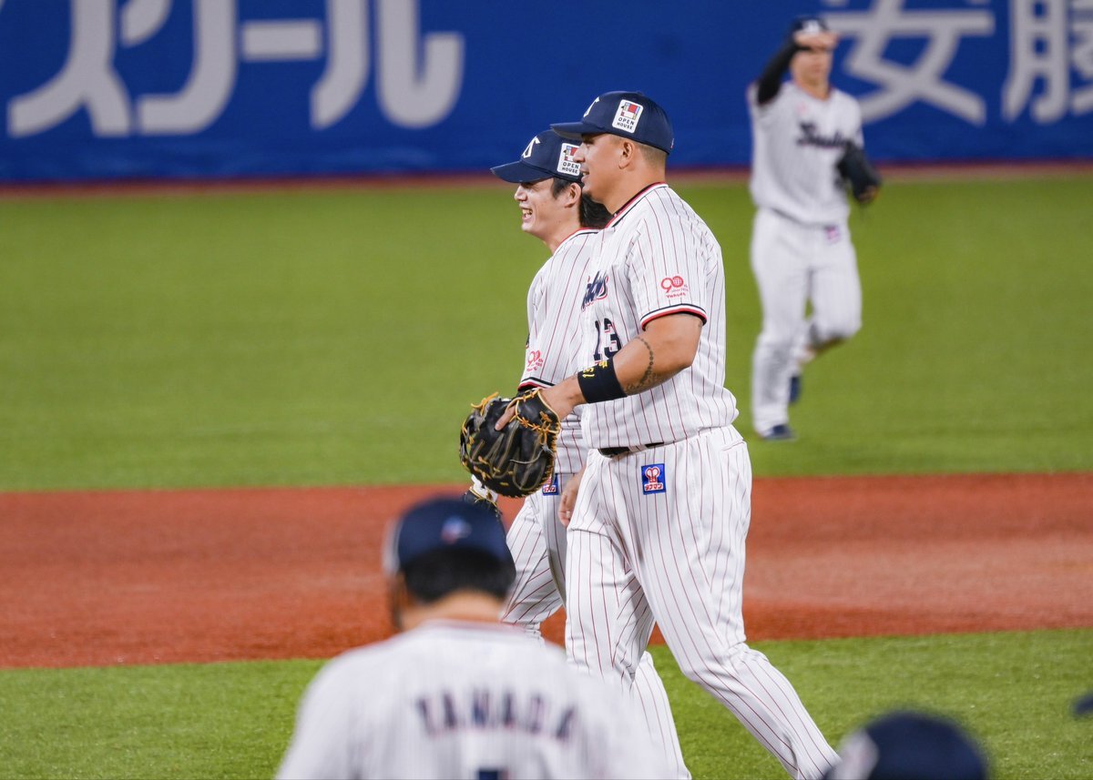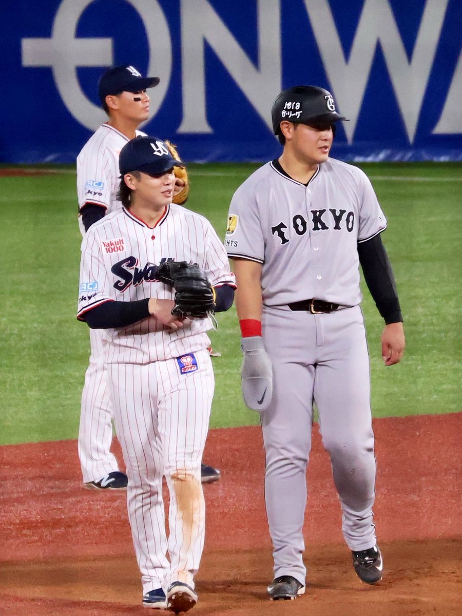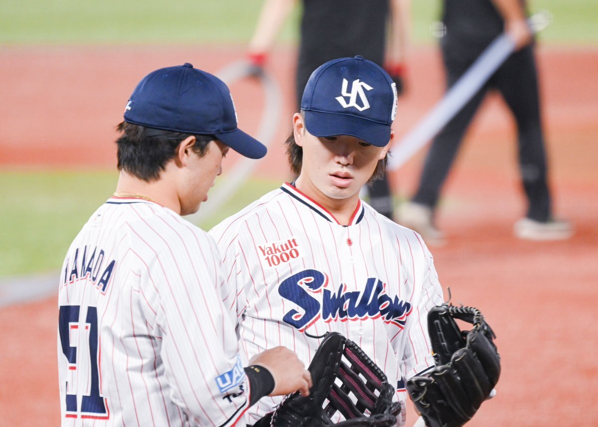 レフトまでついていきそうな勢い #長岡秀樹 #内山壮真 #swallows いろちのカバン買うとかどういうことですか( ˘ω˘)なんなんですか自覚あるんですかその調子でお願いします 9.27神宮 pic.x.com/ovbESCGs57