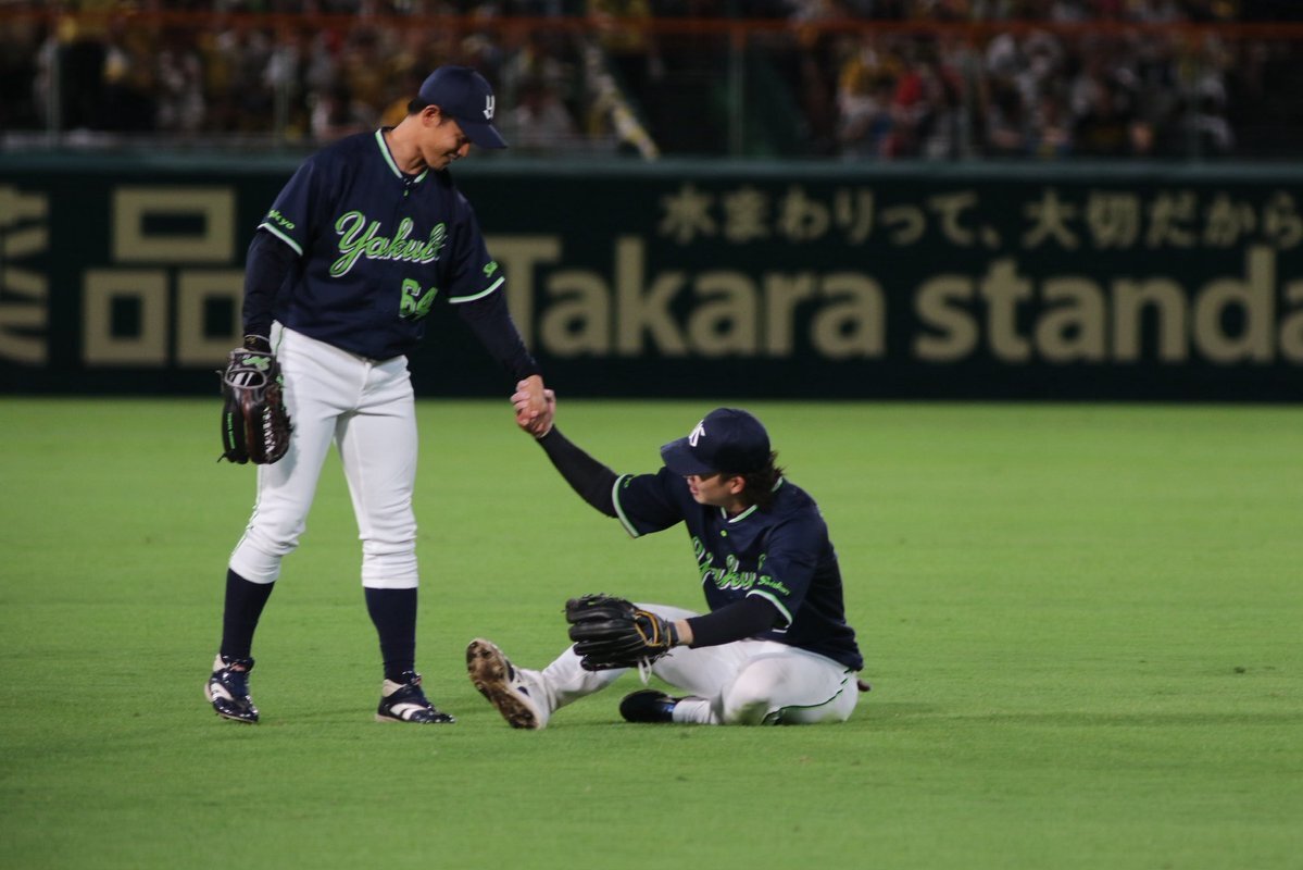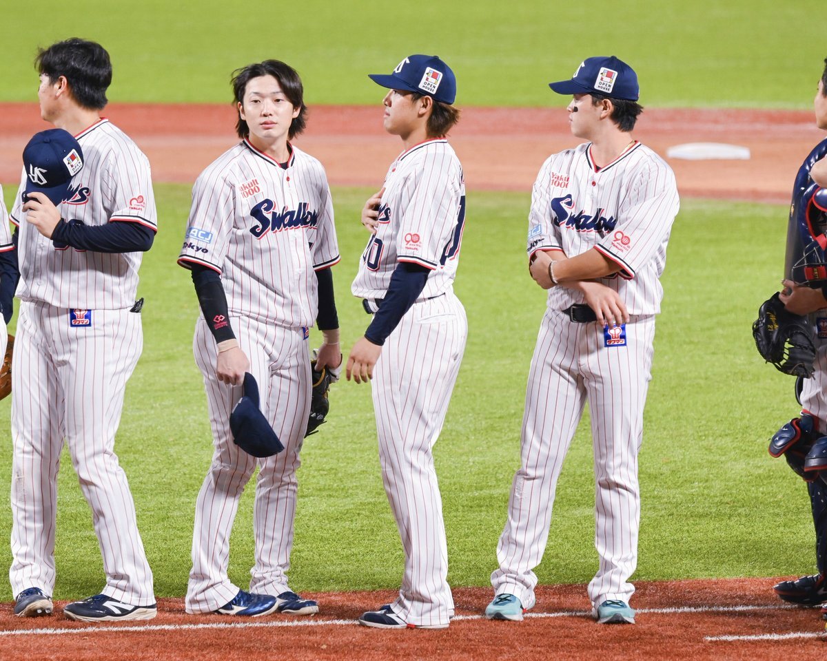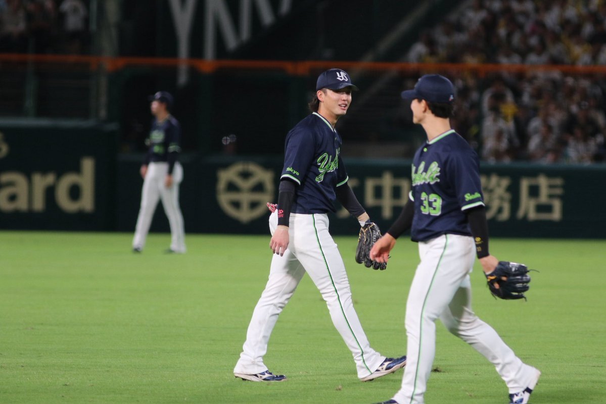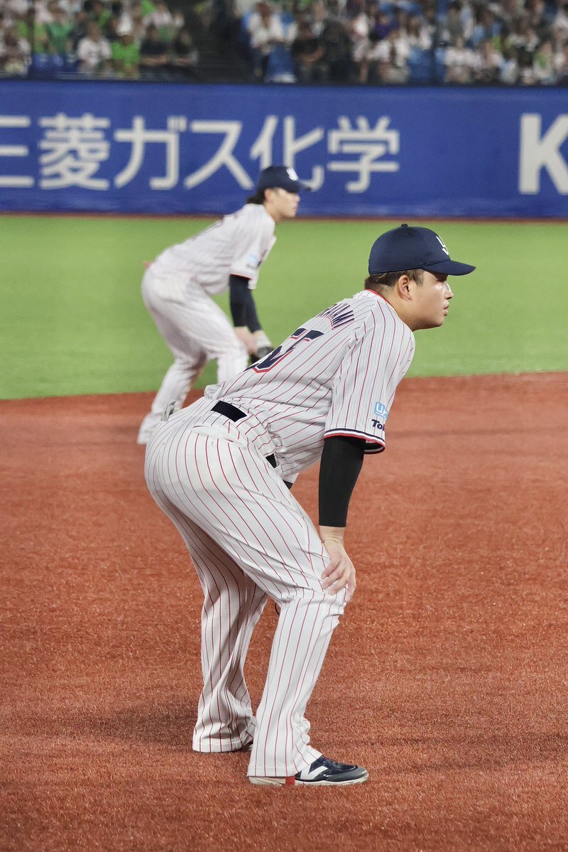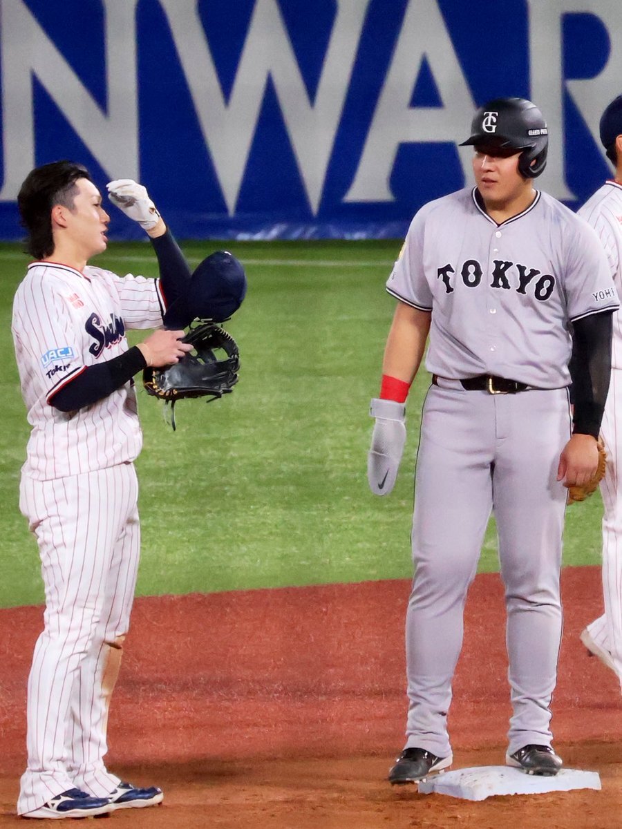 レフトまでついていきそうな勢い #長岡秀樹 #内山壮真 #swallows いろちのカバン買うとかどういうことですか( ˘ω˘)なんなんですか自覚あるんですかその調子でお願いします 9.27神宮 pic.x.com/ovbESCGs57