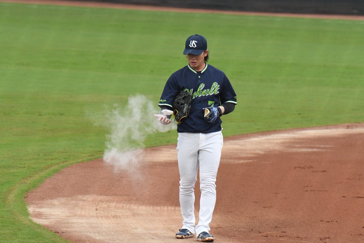 いつのまにか魚眼黒レンズ装着してたひでき #長岡秀樹 #swallows 他球団のながおかすごいな〜を聞くたびに私はにまにましてます( ˘ω˘) 今シーズンもよく守りました✨ 10.4マツダ pic.x.com/3bYaSaqiPr