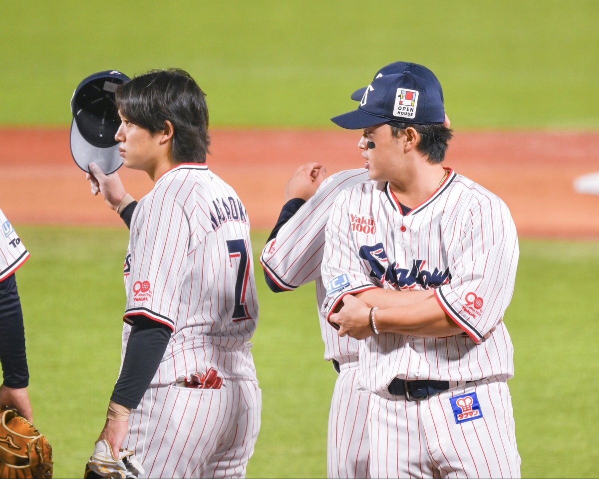 すわほーハイタッチのときオスひでが小突き合いしながら楽しそうに歩いてたのかわいかった思い出(⸝⸝- ̫ -⸝⸝)ෆ⃛ 2025.9.22@神宮 #オスナ #長岡秀樹 pic.x.com/rVzMe7Ausq