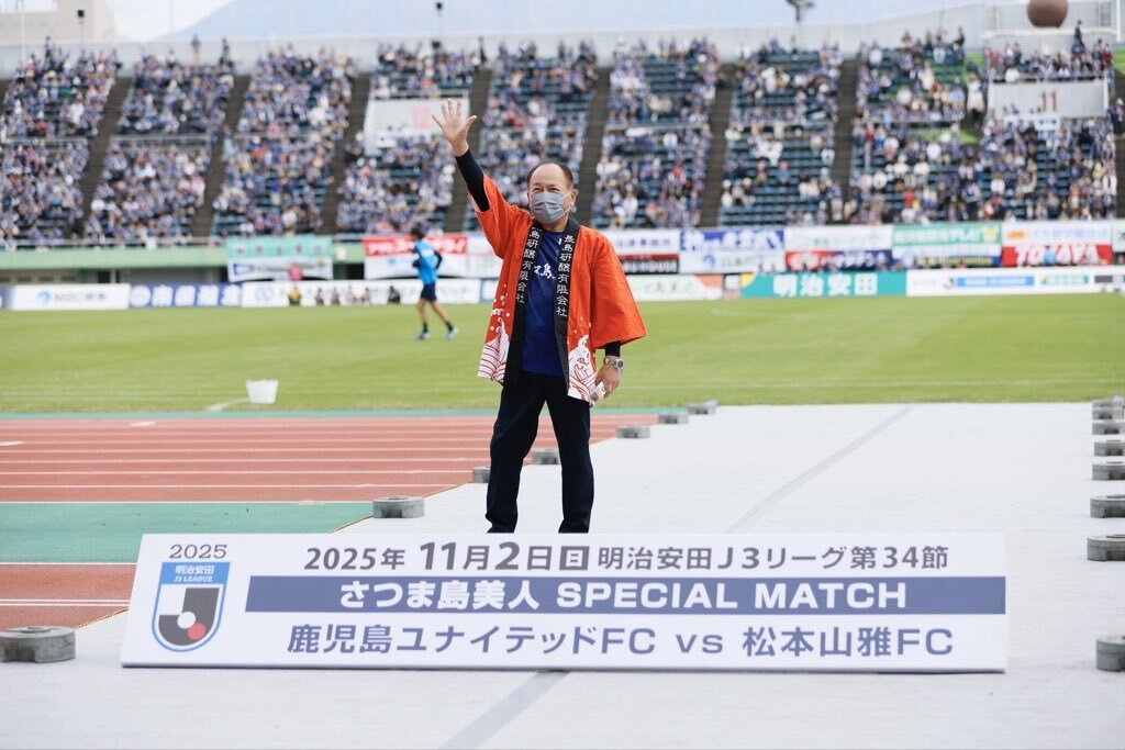 【J3第34節vs #松本山雅FC】 試合前に #長島研醸有限会社 代表取締役 長山正盛 様による ご挨拶と始球式が行われました。 長島研醸有限会社公式HP shimabijin.jp #鹿児島ユナイテッドFC #さつま島美人スペシャルマッチ #長島研醸有限会社 #さつま島美人 #祝杯はさつま島美人で pic.x.com/JRw6x1mfMJ