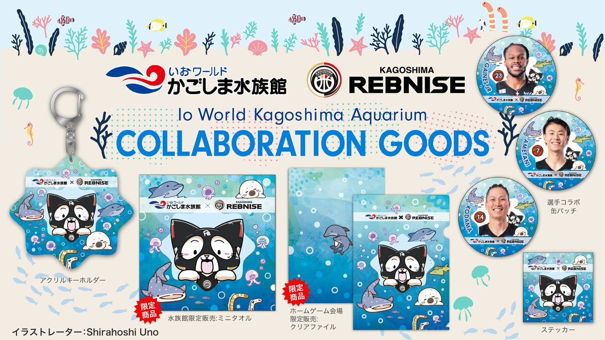 🐠いおワールドかごしま水族館×鹿児島レブナイズ🏀 #いおワールドかごしま水族館 とのコラボグッズは、11月22日(土)のホームゲーム会場より販売を開始いたします🐡 レブナイズの会場そして水族館限定グッズもございます‼︎ 数に限りがございますので、お早めにお買い求めください💨 x.com/kg_rebnise/sta…