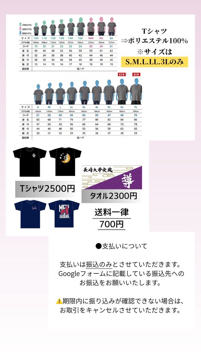 【導Tシャツ&タオル販売開始‼︎】 本日より"導Tシャツ&フェイスタオル"の販売を開始します🥷 詳細は画像や公式Instagramをご覧ください♪ 何かご質問がありましたら、DMまでお願いします🤲🏻 購入フォーム→ x.gd/iTXM0 Instagram→ x.gd/6ZTzg #長崎大学突風 # pic.x.com/j5kC6i4vrq