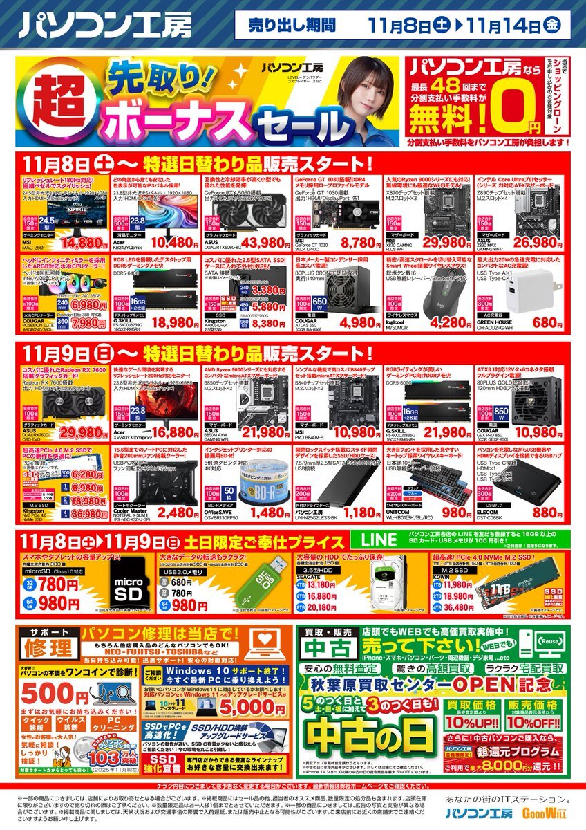 #セール 情報】 11月8日より『超 先取りボーナスセール』第2弾実施中‼️ 日替わり特選品などお買い得品多数ご用意しております😄 気になる商品ございましたら、ぜひ店頭まで😆 *一部完売した商品がございます。予めご了承ください。 #パソコン工房 #佐世保市 #長崎県 pic.x.com/89ekWELNfV