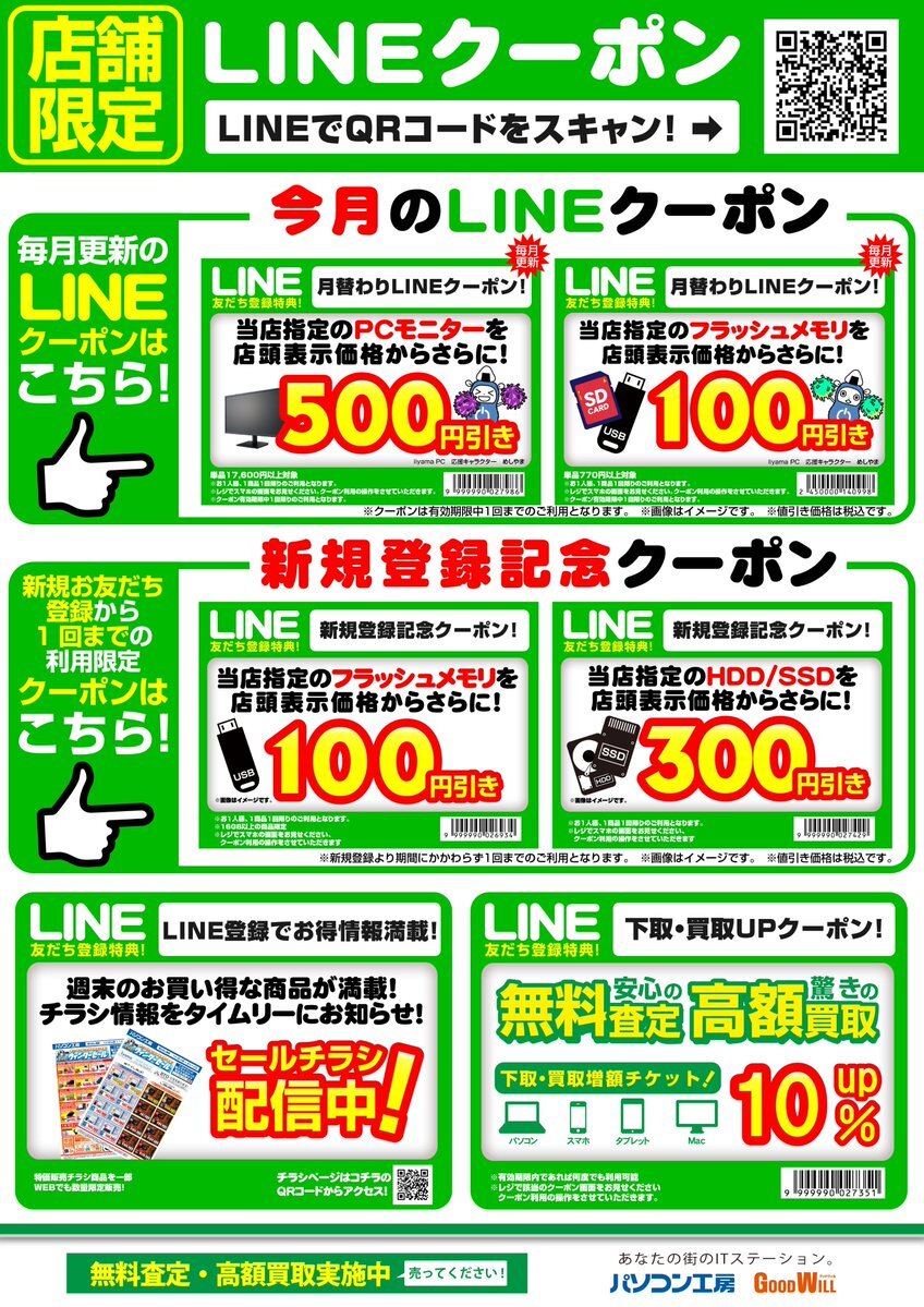#キャンペーン 情報 】 11月のLINEクーポンはこちら‼️ モニター、フラッシュメモリの値引きクーポン 新規登録記念でフラッシュメモリ、HDD/SSDの値引きクーポンもらえます😄 QRコードから友達登録をお願い致します‼️ #パソコン工房 #佐世保市 #長崎県 pic.x.com/O77I7v1XSk