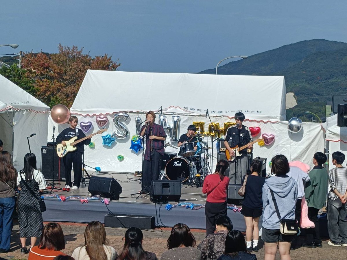 【軽音部ステージ🎸】 ただいま軽音部によるライブステージ開催中!✨ 迫力ある演奏で会場が大盛り上がりです🔥 ぜひ足を運んでお楽しみください🎶 #SUNFESTA #長崎県立大学シーボルト校 #学園祭 pic.x.com/IsqED9bN6i