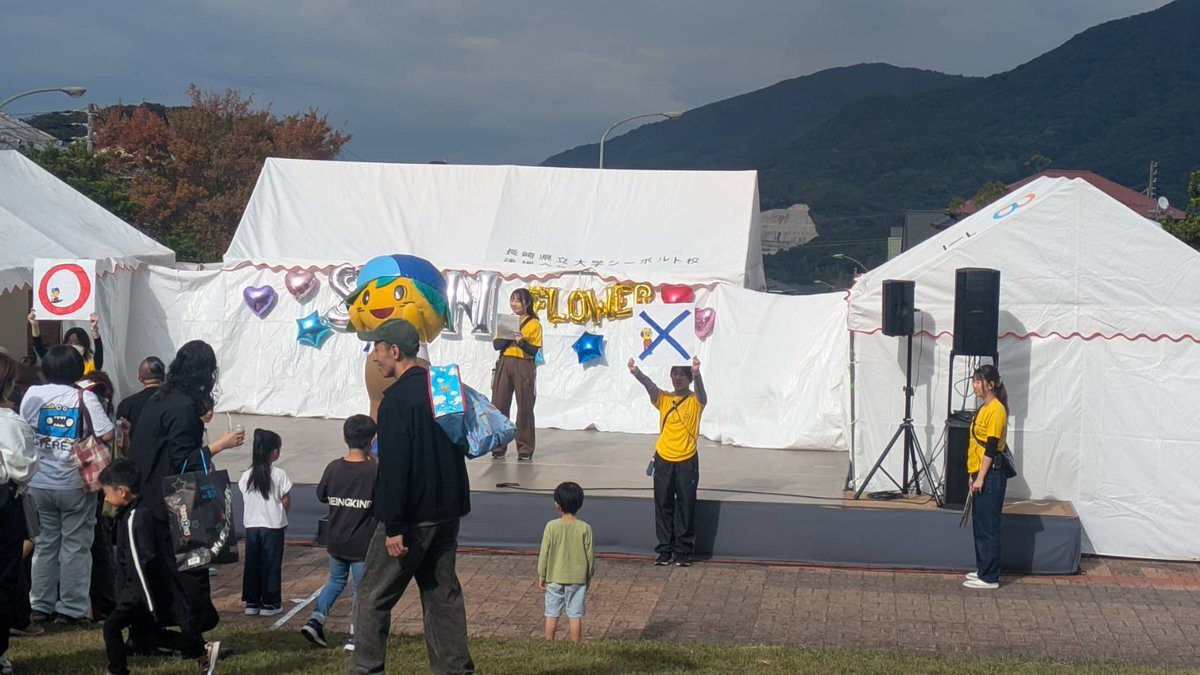 🕝13:30〜【みんなで挑戦!長与○×クイズ❓】 このあとメインステージで「長与○×クイズ」がスタート🧐✨ 前半はミックンがクイズを出題!後半は写真撮影会📸 正解目指してチャレンジしよう! #SUNFESTA #長崎県立大学シーボルト校 #学園祭 #長与町 #ミックン